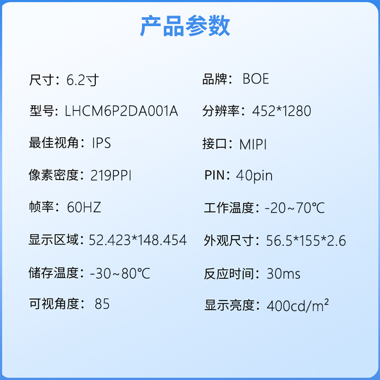 6.2인치 452*1280 LCD 디스플레이 휴대용 터치스크린 MIPI 인터페이스 의료 산업용 제어 스마트 홈스토어 가기