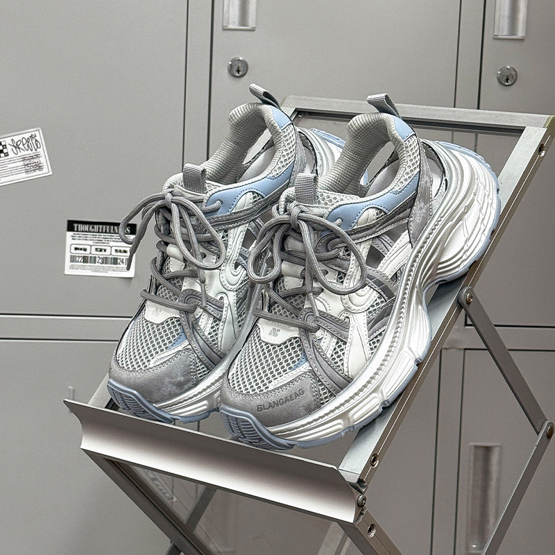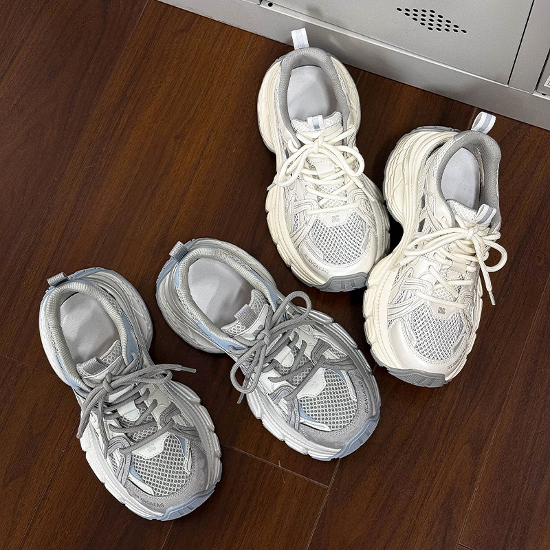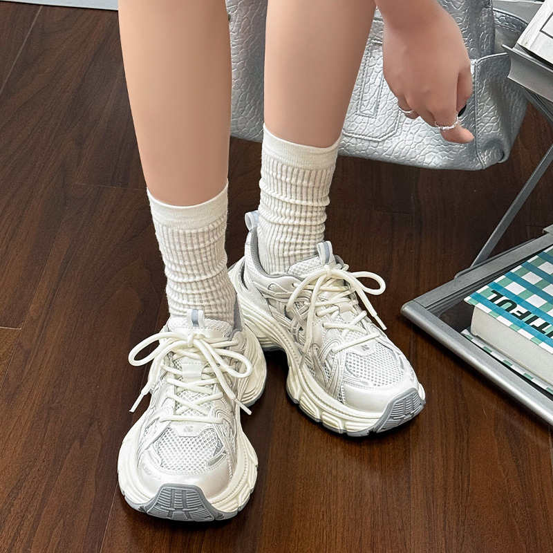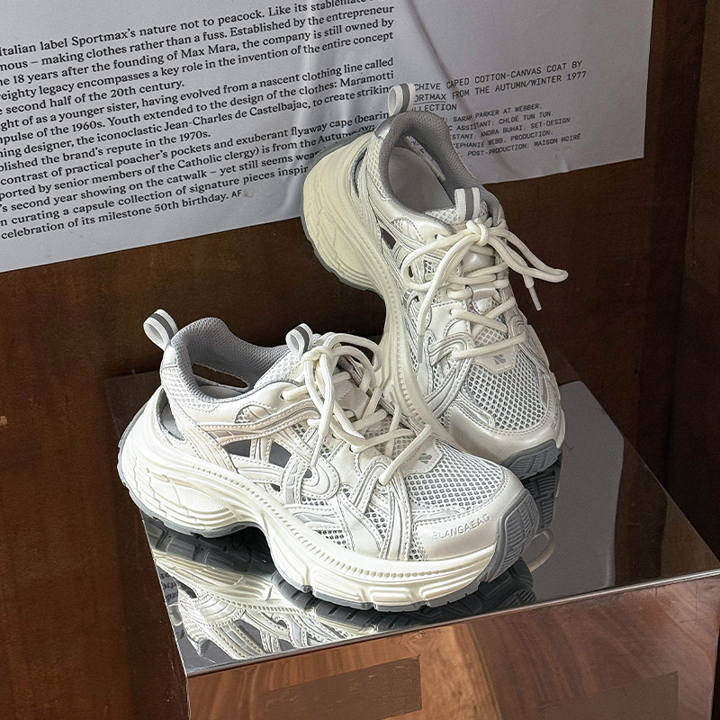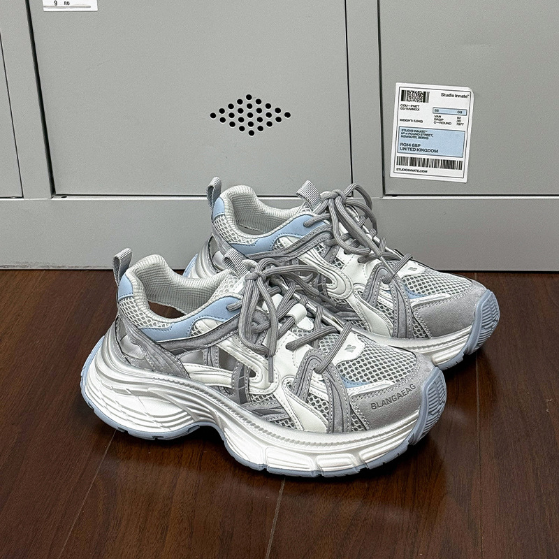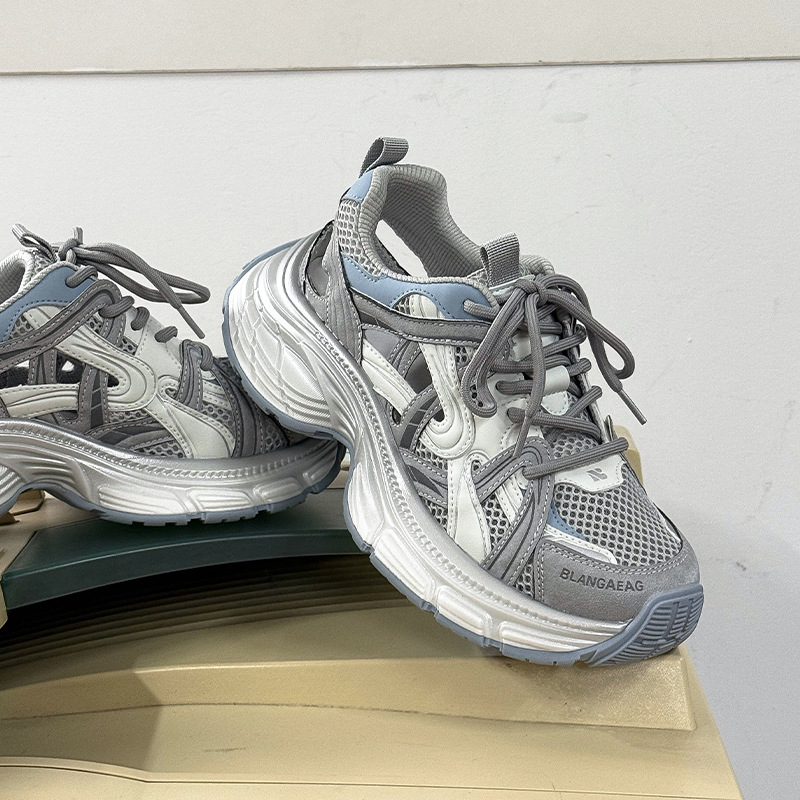 여성용 두꺼운 밑창이 있는 정품 가죽 아빠 신발 2025 여름 새로운 스타일 메쉬 통기성 중공 슬리밍 경량 스포츠 운동화 유행스토어 가기