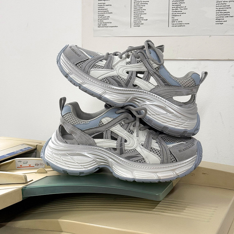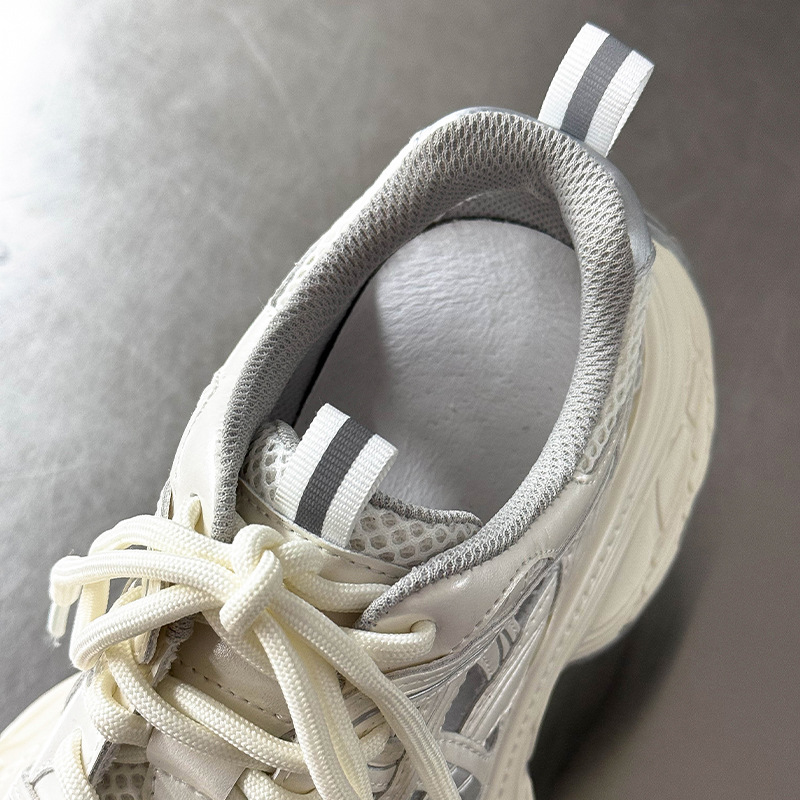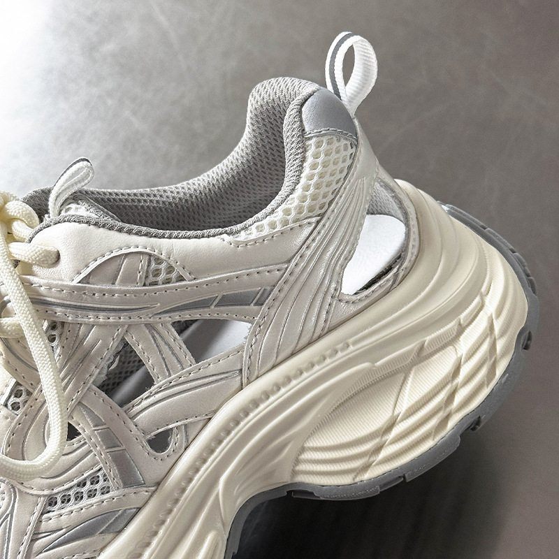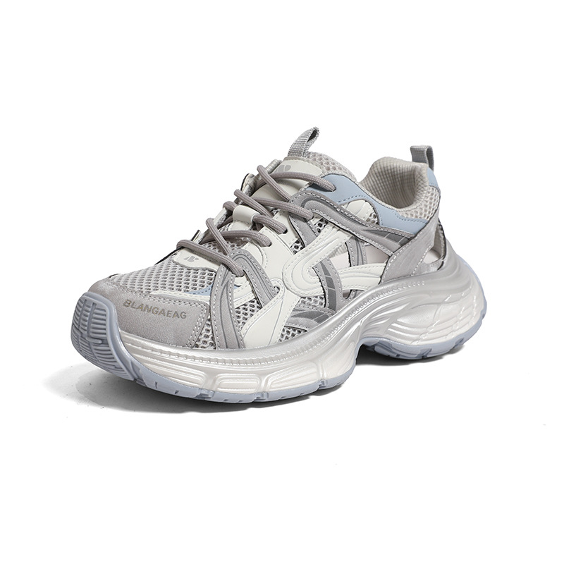 여성용 두꺼운 밑창이 있는 정품 가죽 아빠 신발 2025 여름 새로운 스타일 메쉬 통기성 중공 슬리밍 경량 스포츠 운동화 유행