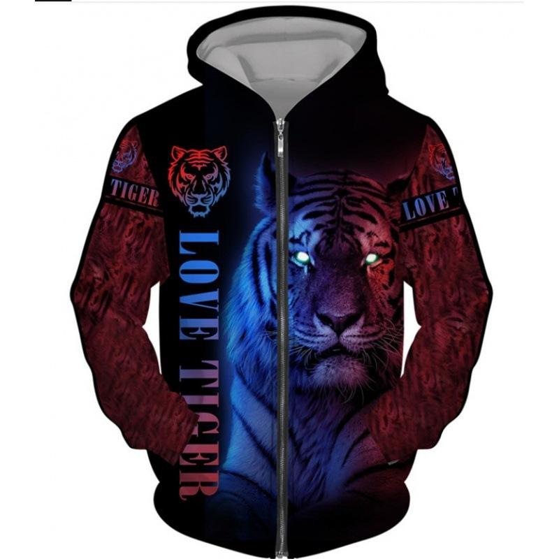 봄과 가을 3D 디지털 인쇄 호랑이 시리즈 후드 패션 남성/여성 지퍼 카디건 맞춤형 커플 스웨트 셔츠