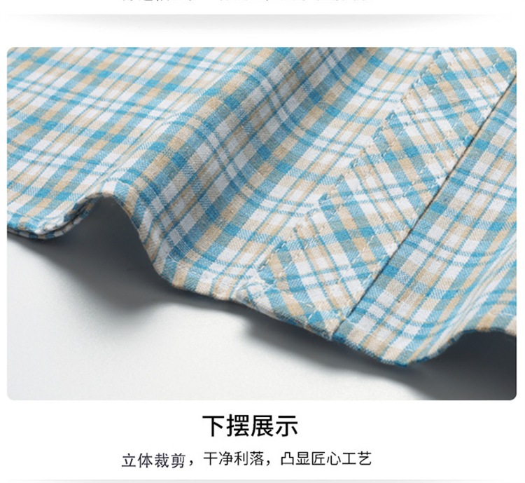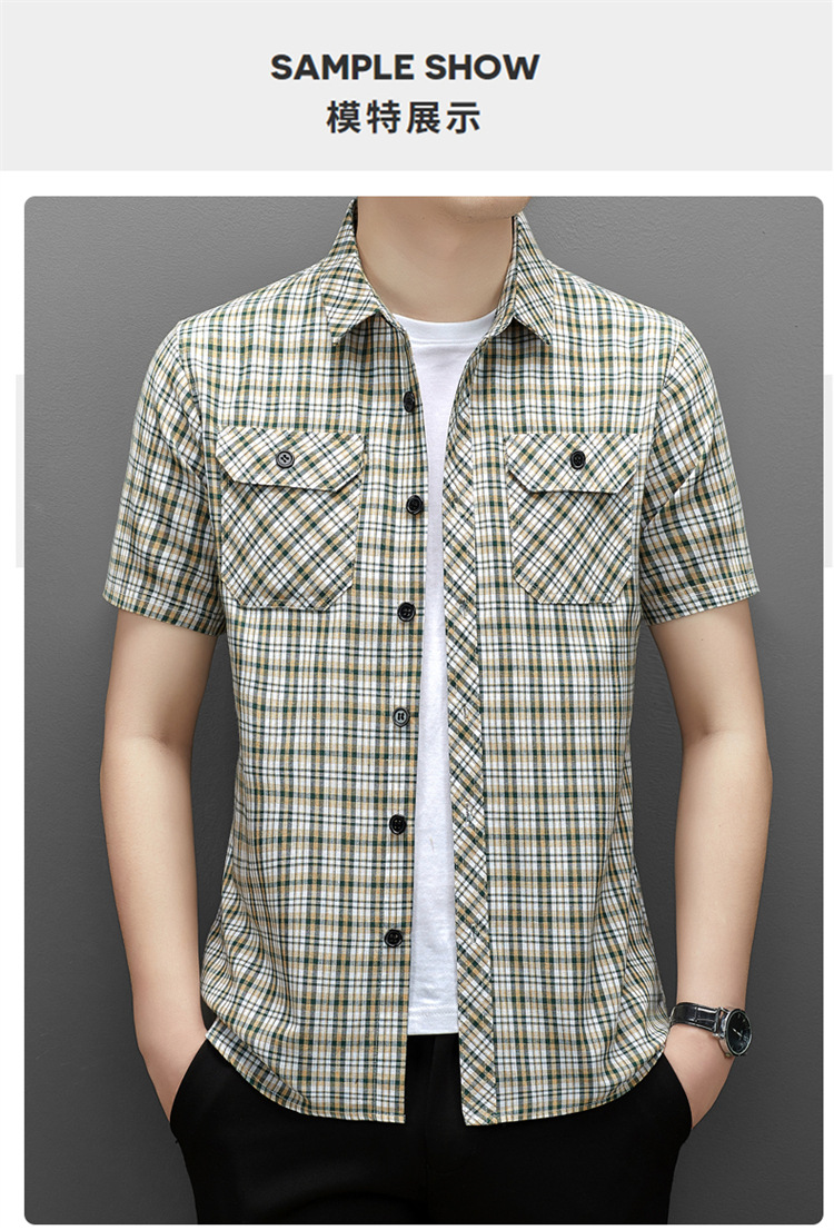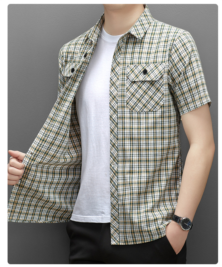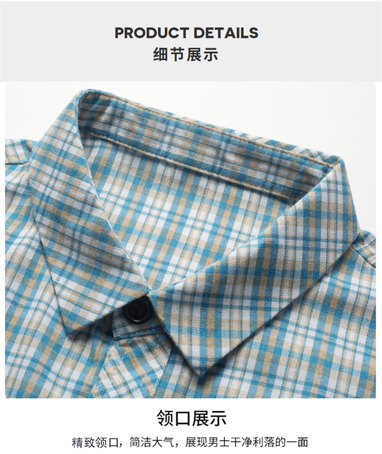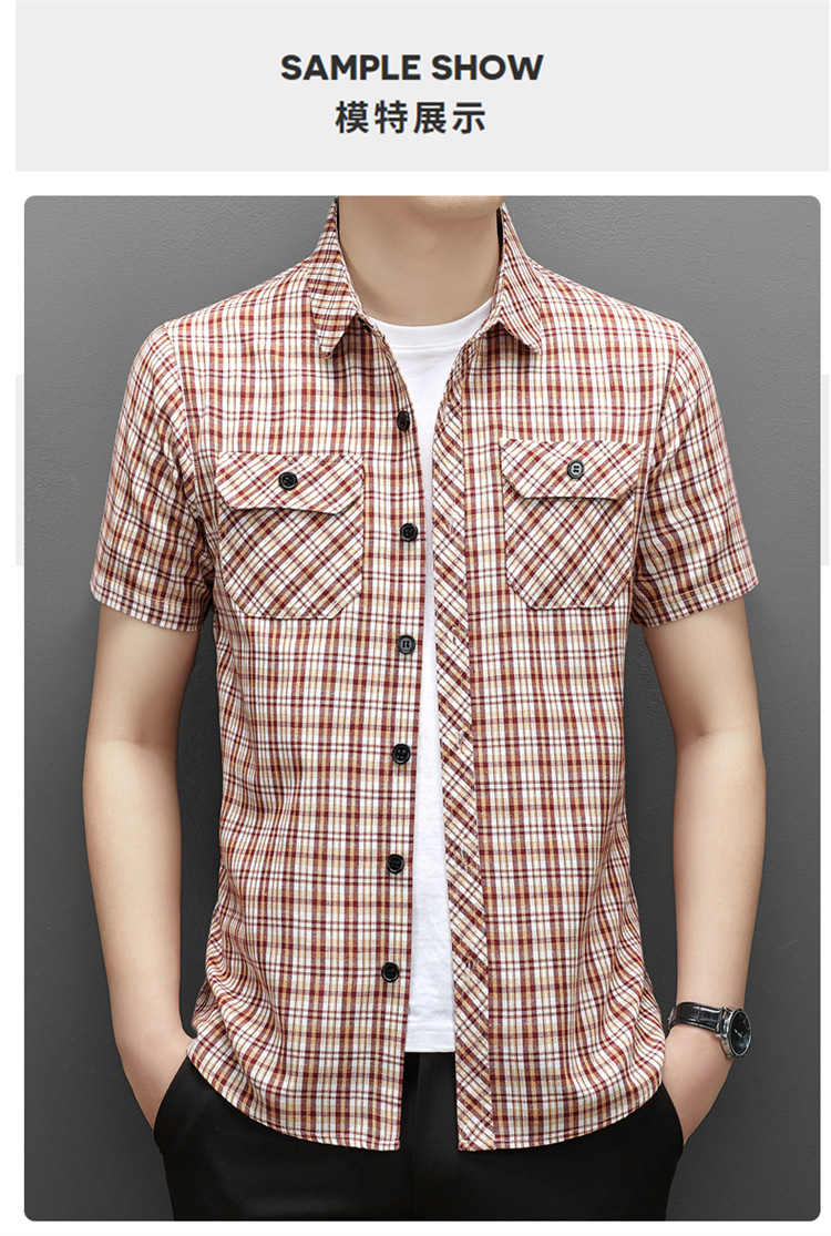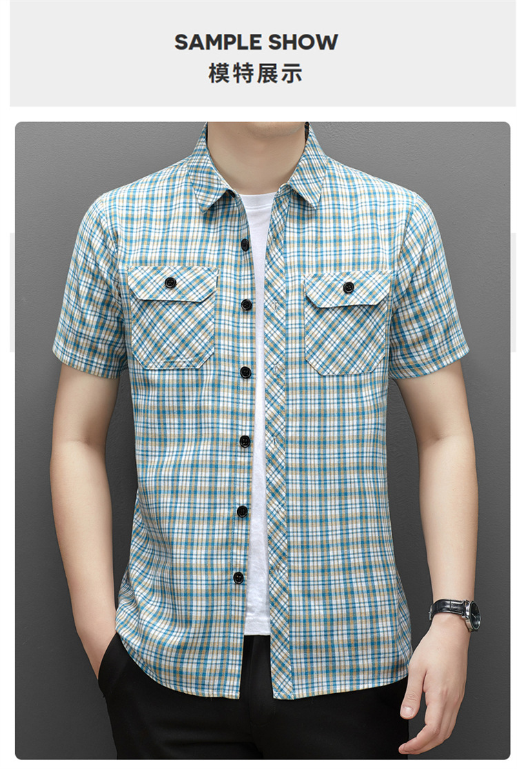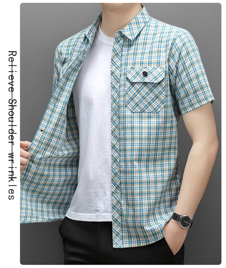 젊은 및 중년층을 위한 여름 신상 면 및 린넨 반팔 남성 셔츠, 체크무늬 더블 포켓 작업복, 남성용 캐주얼 반팔 셔츠스토어 가기