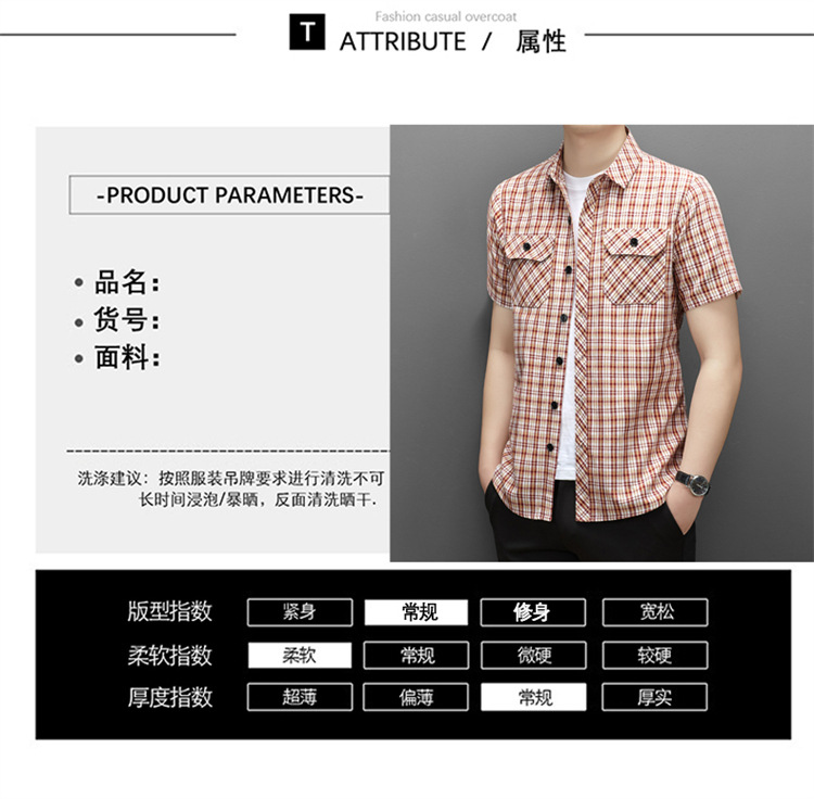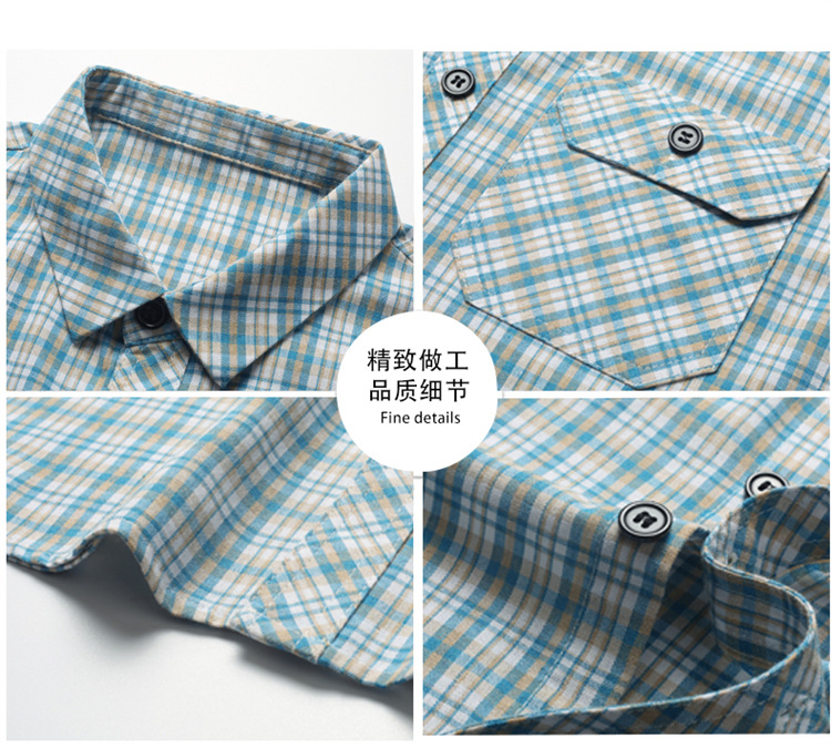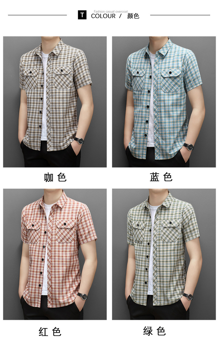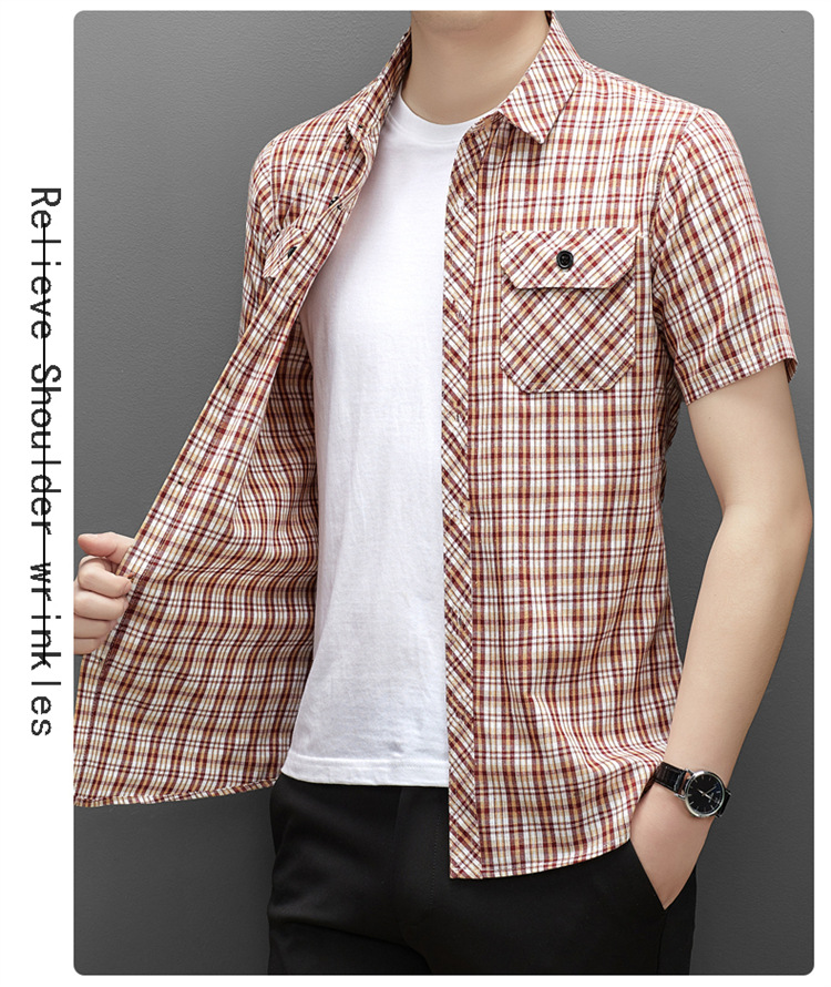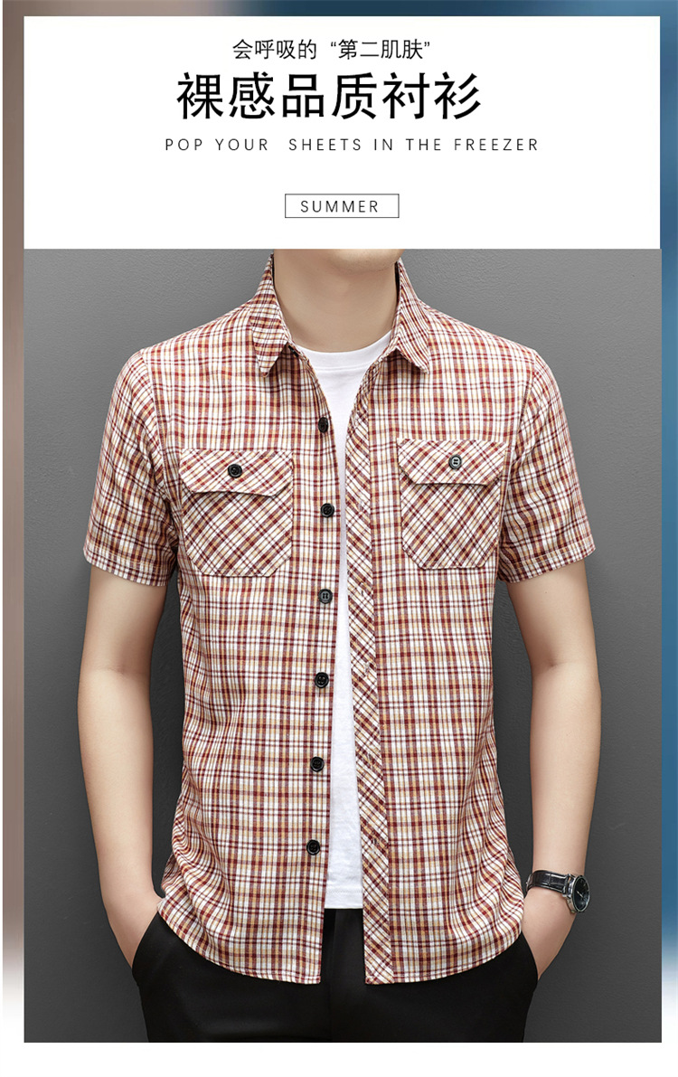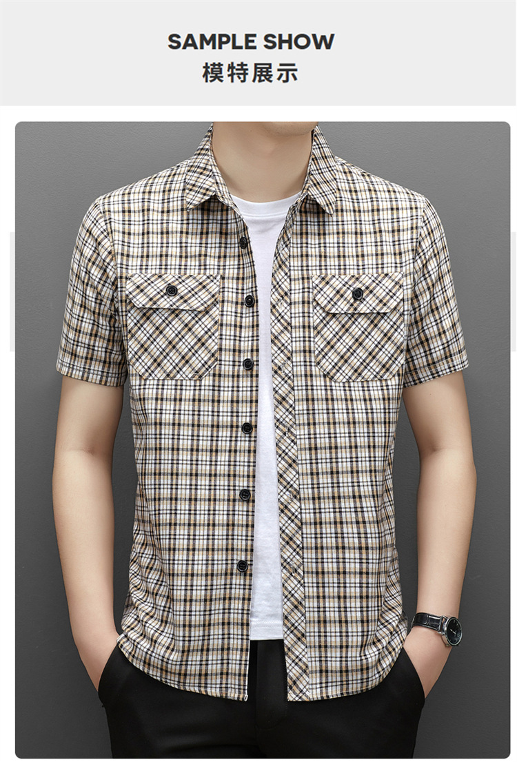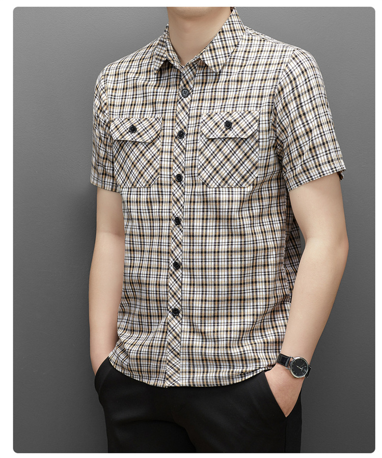 젊은 및 중년층을 위한 여름 신상 면 및 린넨 반팔 남성 셔츠, 체크무늬 더블 포켓 작업복, 남성용 캐주얼 반팔 셔츠스토어 가기