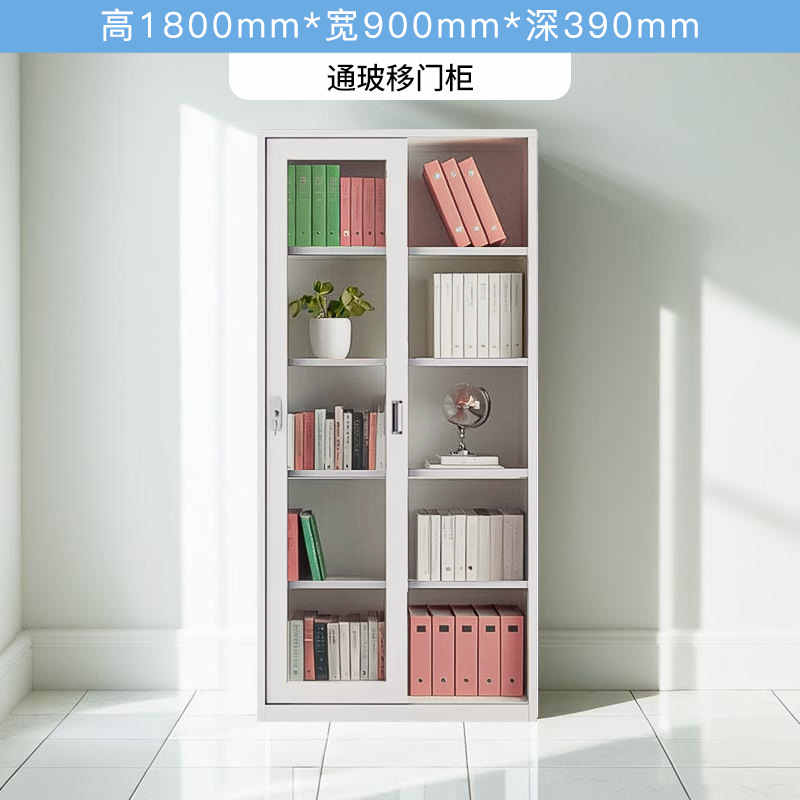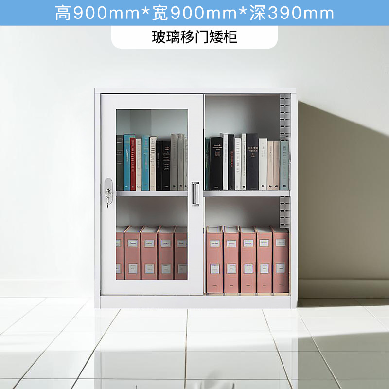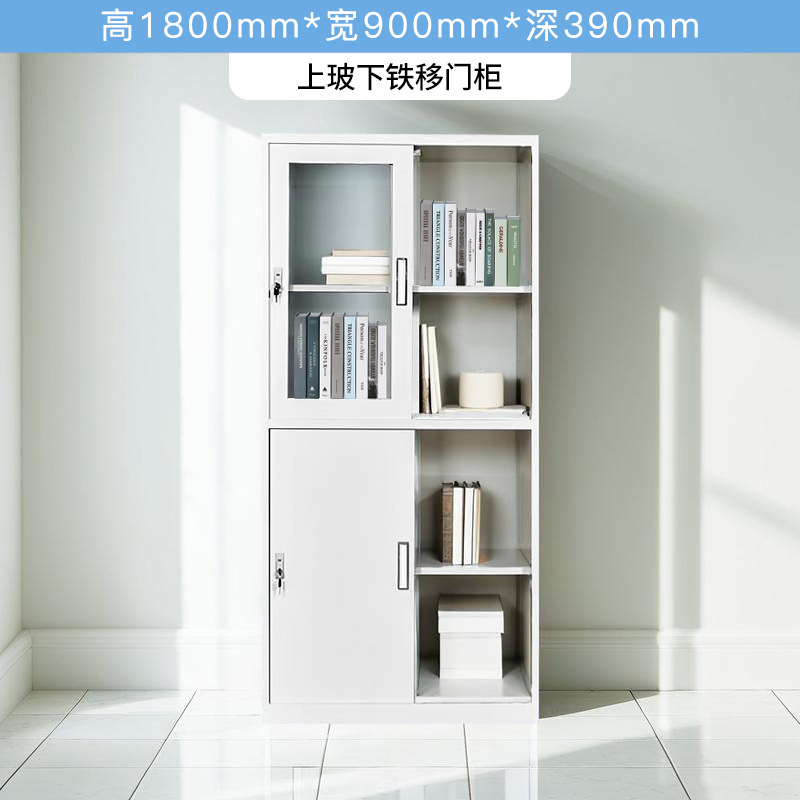 • 상단 유리 및 하단 철제 슬라이딩 도어 캐비닛