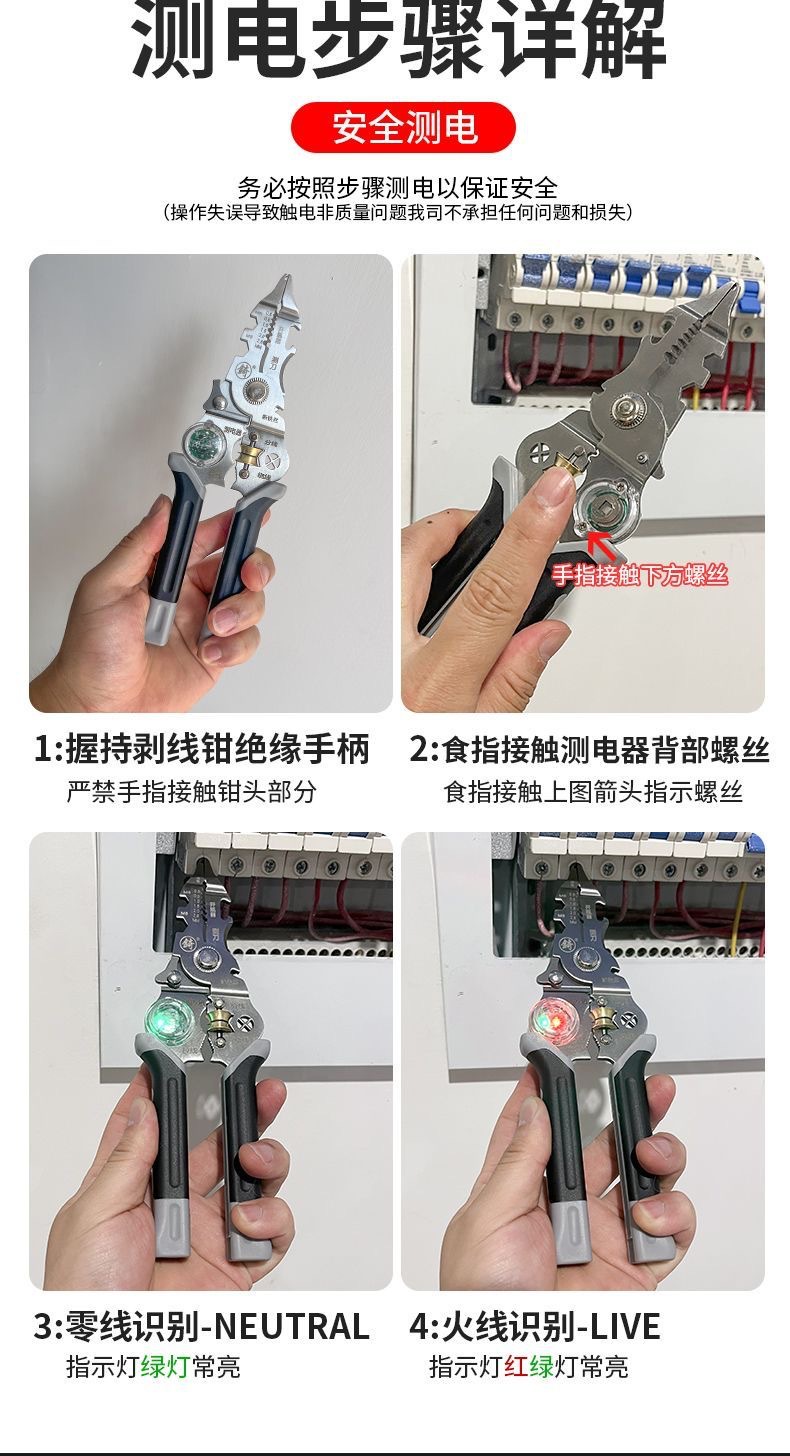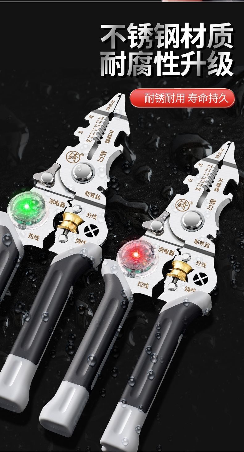 [징] 전기 테스트 펜, 다기능 와이어 스트리핑, 새로운 전기 기술자 전용 와이어 스트리핑 펜치, 와이어 감기, 와이어 절단 및 압착스토어 가기