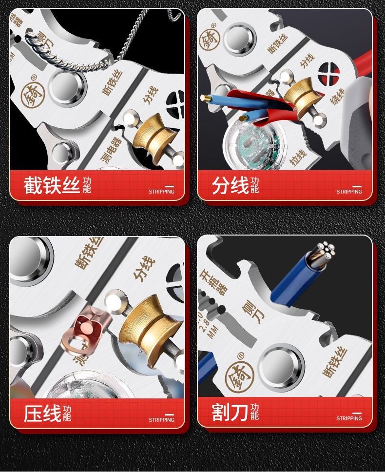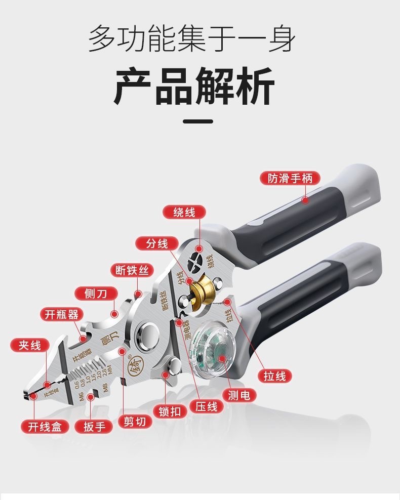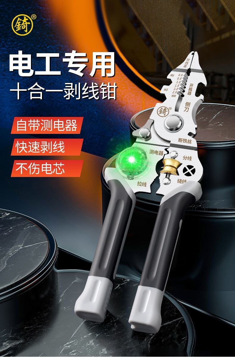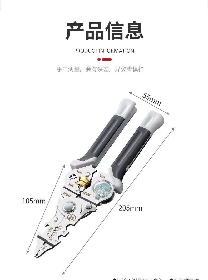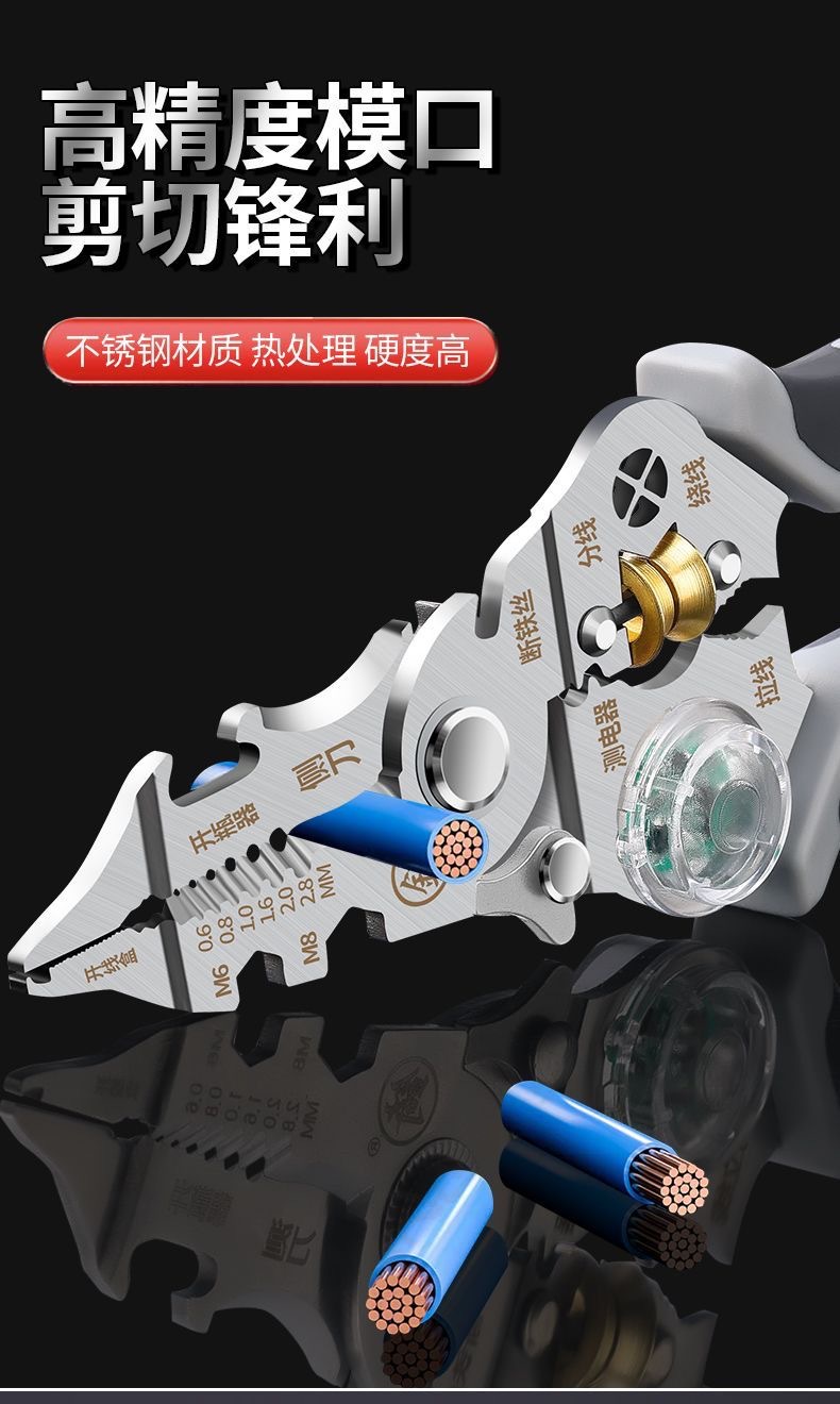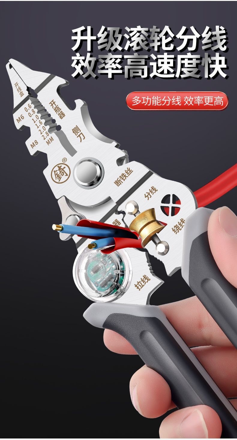 [징] 전기 테스트 펜, 다기능 와이어 스트리핑, 새로운 전기 기술자 전용 와이어 스트리핑 펜치, 와이어 감기, 와이어 절단 및 압착