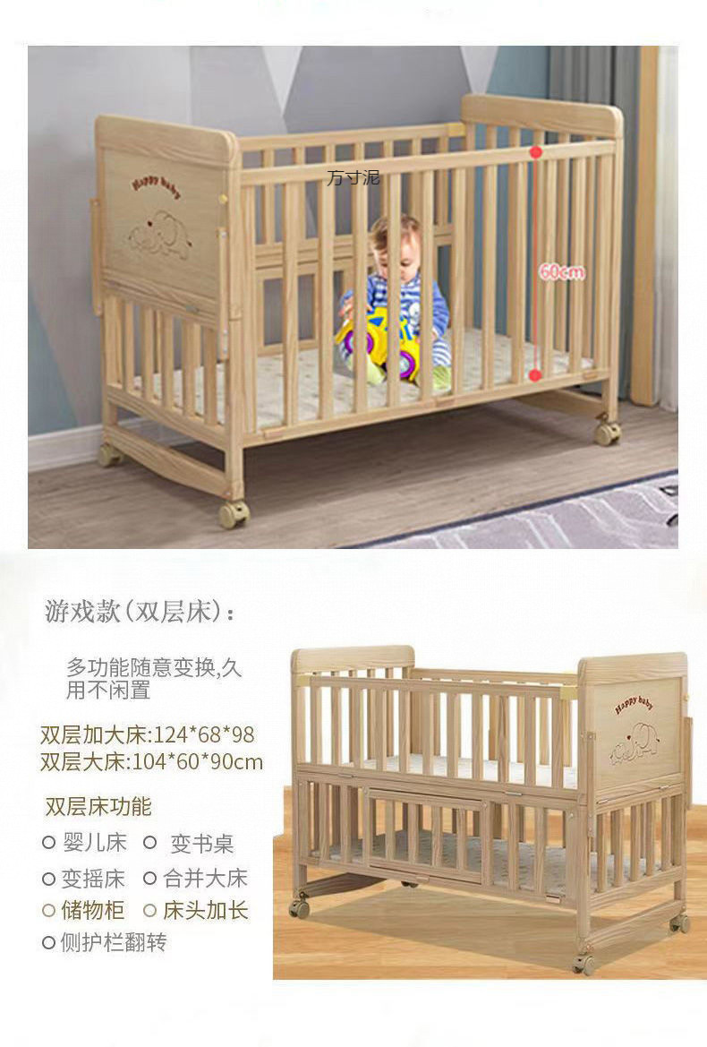 다기능 원목 유아용 침대, 높이 조절 가능한 어린이 침대, 변형 가능한 책상, 유아용 침대, 간이 요람 침대, 대형 침대 공장스토어 가기