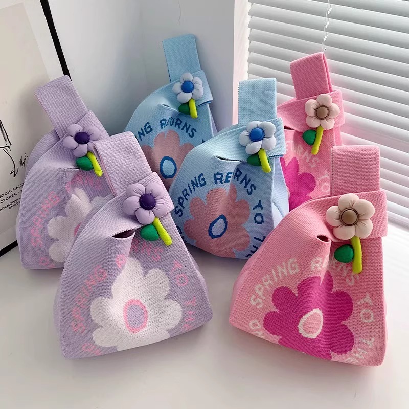 아기 연회 선물 선물 가방 귀여운 꽃 니트 가방 ins 스타일 여성 대용량 손 선물 가방스토어 가기