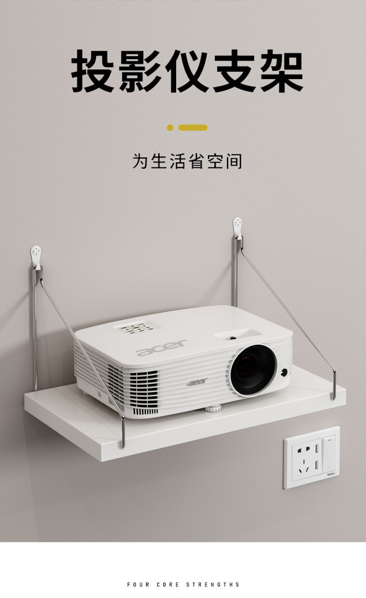 프로젝터 브래킷, 펀치 없는 침대 옆 벽걸이형 수납 선반, 거실 라우터 수납 선반, 행거, 걸이 트레이 선반