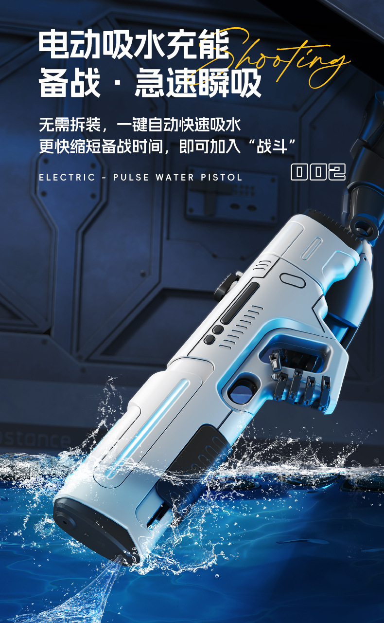 2025 펄스 빛 전기 물 총 고압 강력한 자동 물 흡수 물 튀는 축제 여름 물 총 장난감을 재생 하는 물