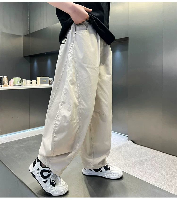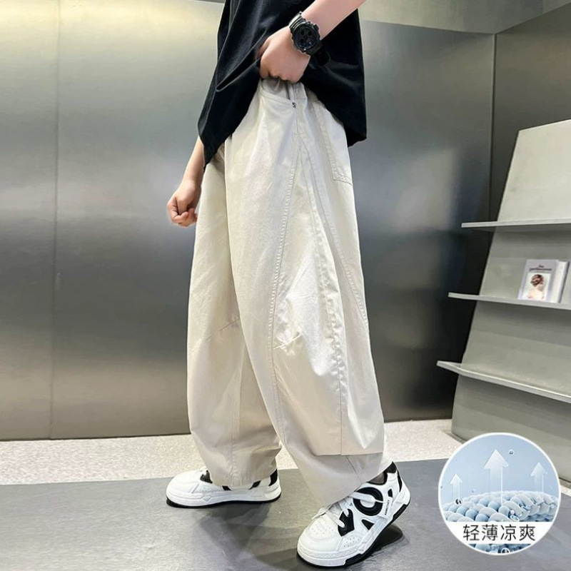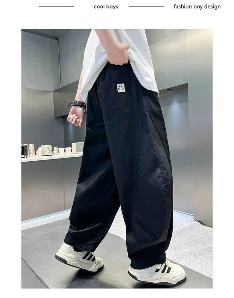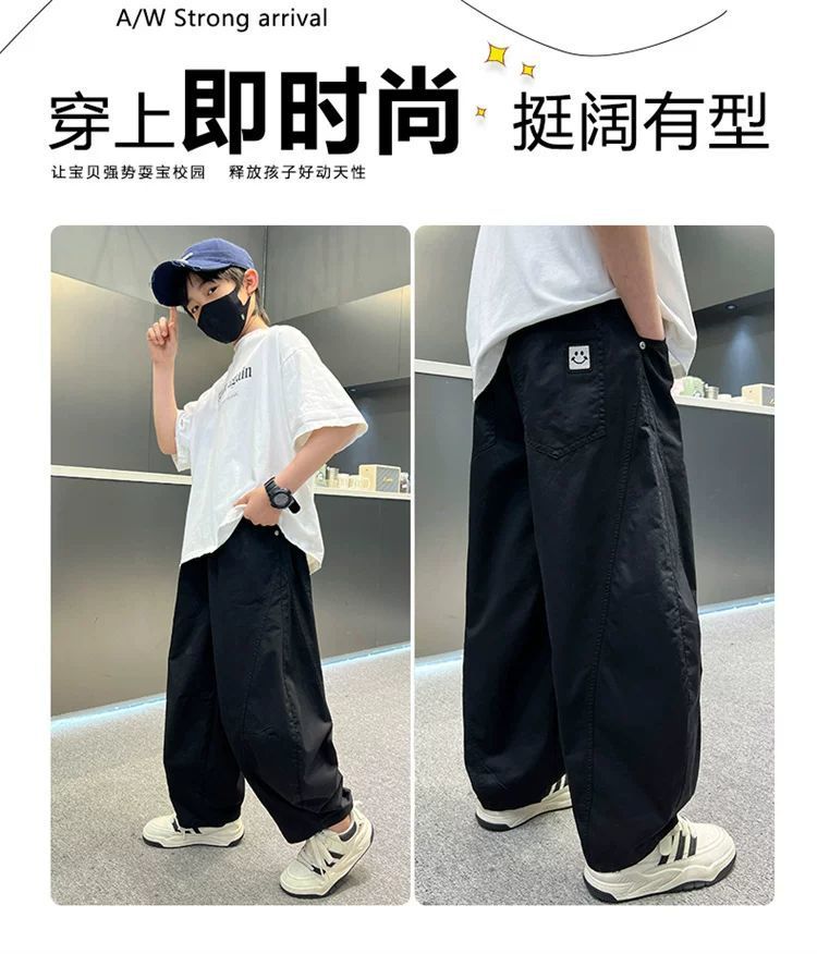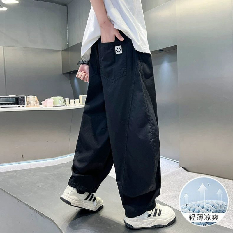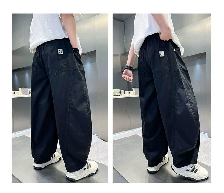 소년 여름 모기 방지 바지 얇은 통기성 스트레이트 바지 2025 새로운 중대형 어린이 느슨한 세이버 속건 바지는 멋지고 트렌디합니다.