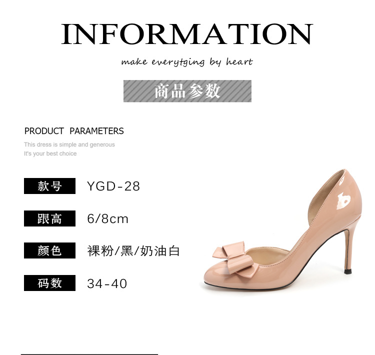 D-28 스팟 페이턴트 가죽 라운드 토 보우 사이드 빈 누드 컬러 하이힐 여성용 작은 사이즈 통근 슈즈스토어 가기