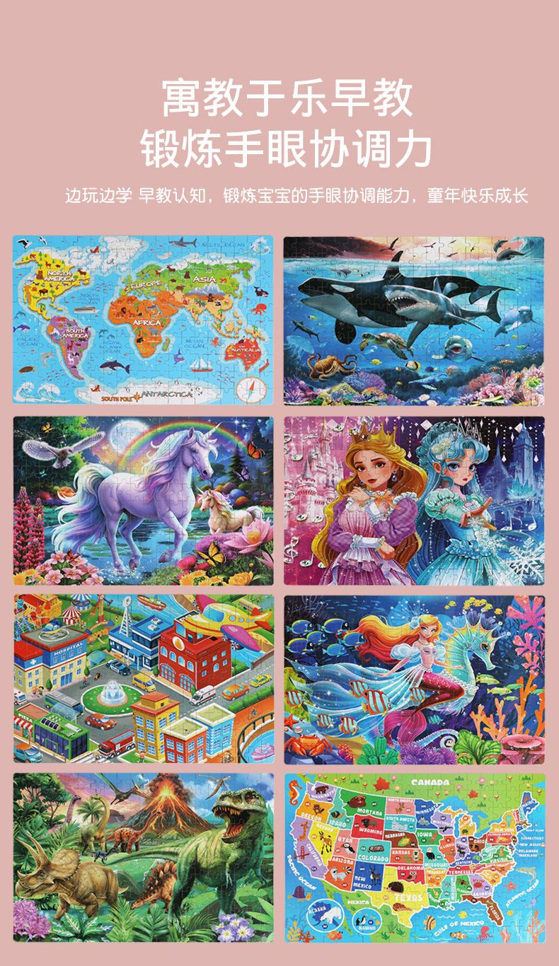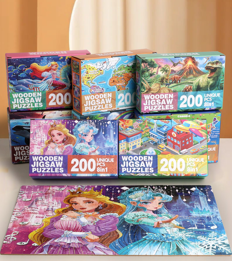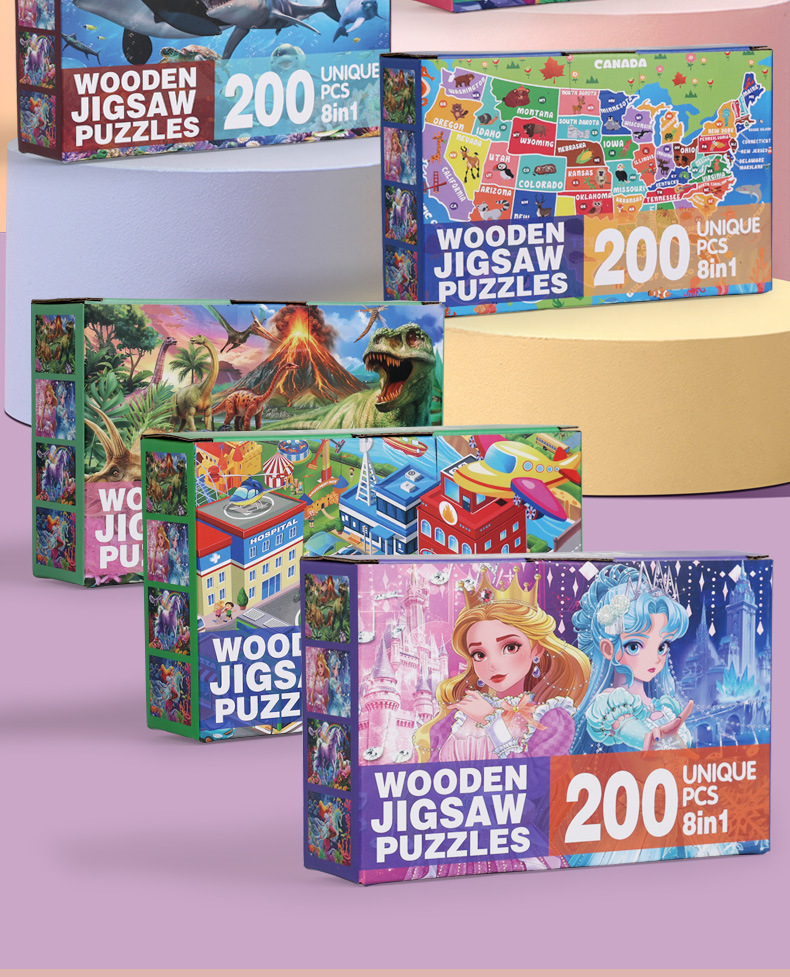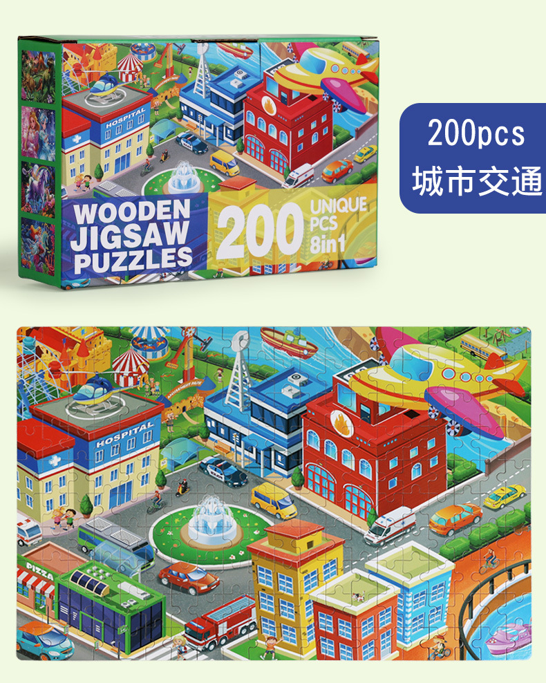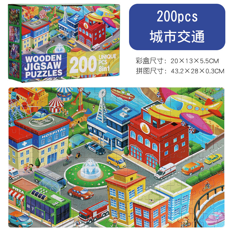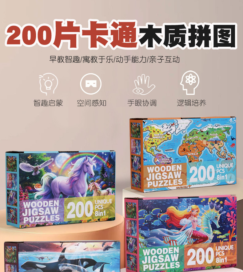 국경 간 어린이 교육 200 조각 나무 박스형 퍼즐 유치원 아기 조기 교육 교육 빌딩 블록 장난감스토어 가기