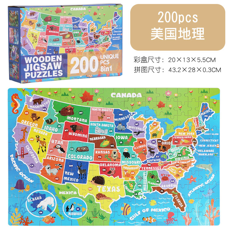국경 간 어린이 교육 200 조각 나무 박스형 퍼즐 유치원 아기 조기 교육 교육 빌딩 블록 장난감