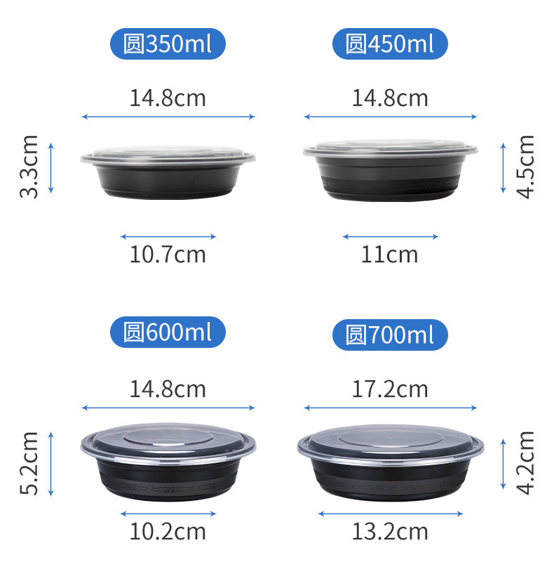 Y350/700/900ml 미국 라운드 일회용 도시락 블랙 테이크 아웃 포장 볼록 뚜껑 도시락, Wang Xiaoxiang
