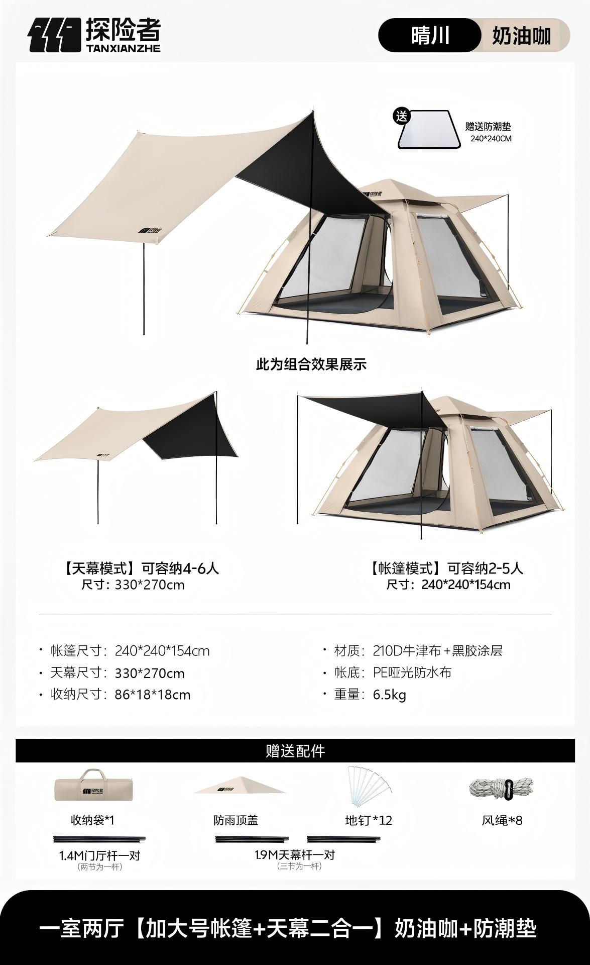 탐험가 텐트 야외 접이식 휴대용 비닐 캠핑 밤새도록 두꺼운 자동 캠핑 피크닉 장비 전체 세트스토어 가기