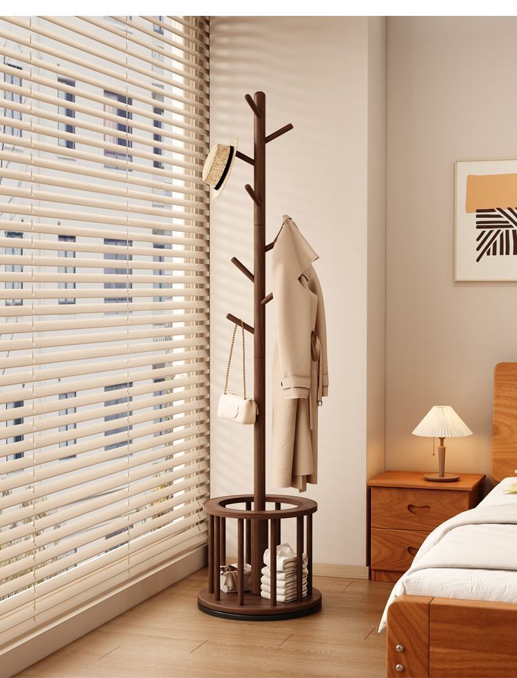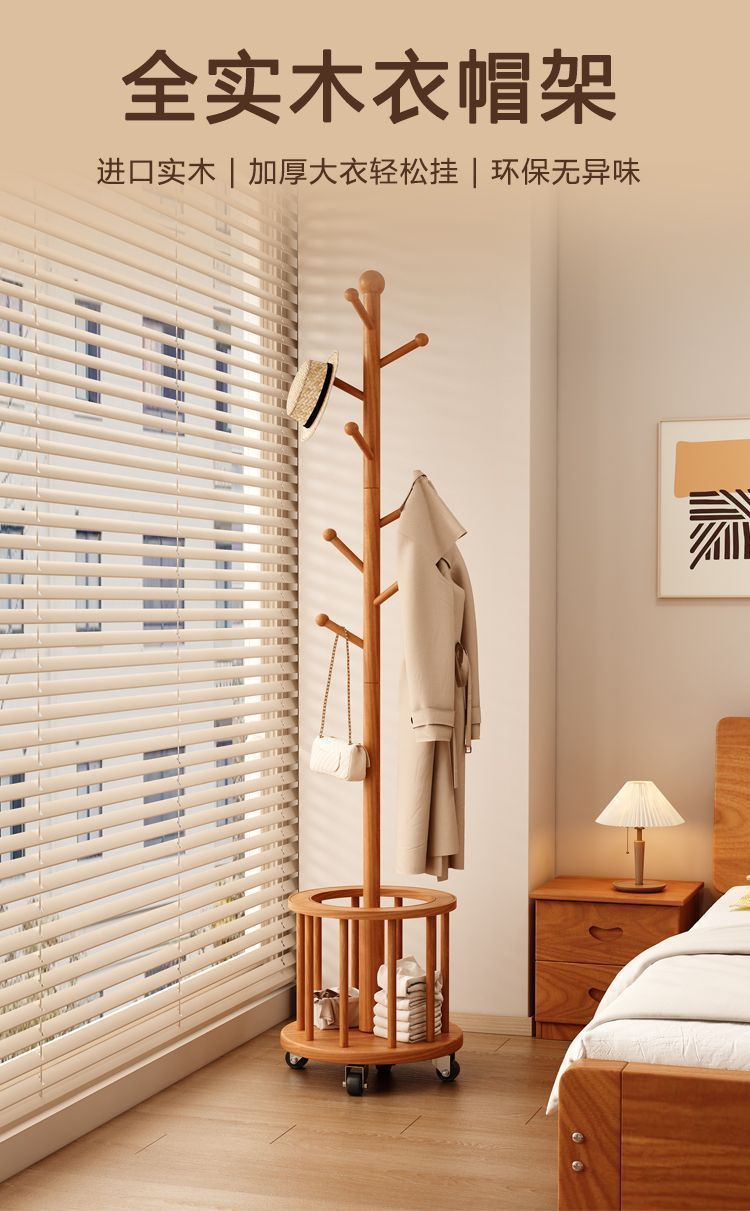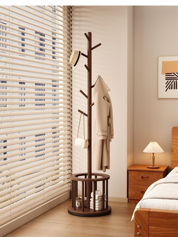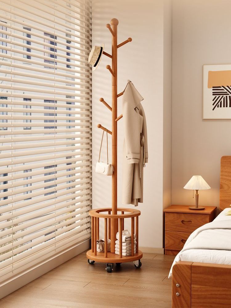 단단한 나무 간단한 바닥 스탠딩 코트 랙 하이 엔드 실내 단일 막대 옷 건조 랙 가정용 가방 걸이 랙 바닥 스탠딩 옷 걸이