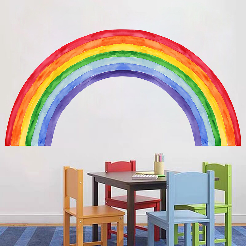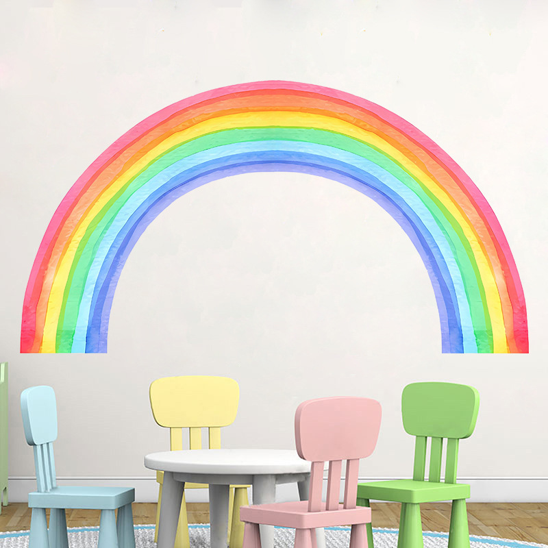 창조적 인 만화 수채화 무지개 벽 장식 스티커 어린이 방 유치원 배경 귀여운 장식 자기 접착 스티커