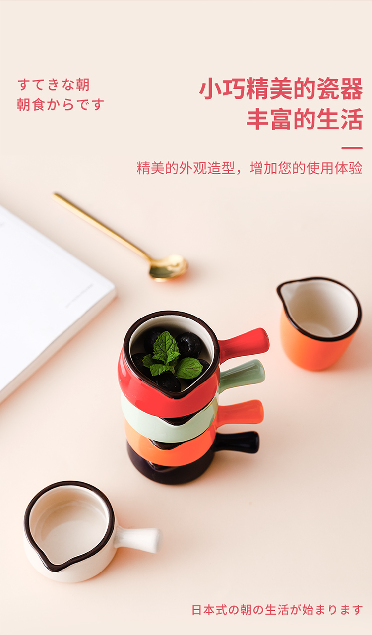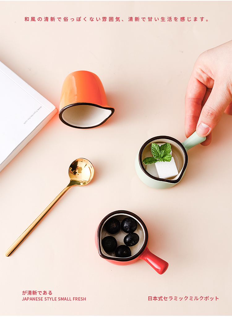 세라믹 뾰족한 노즐 손잡이가있는 작은 우유 냄비 에스프레소 작은 우유 냄비 창조적 인 일본식 조미료 냄비 스테이크 주스 풀 컵