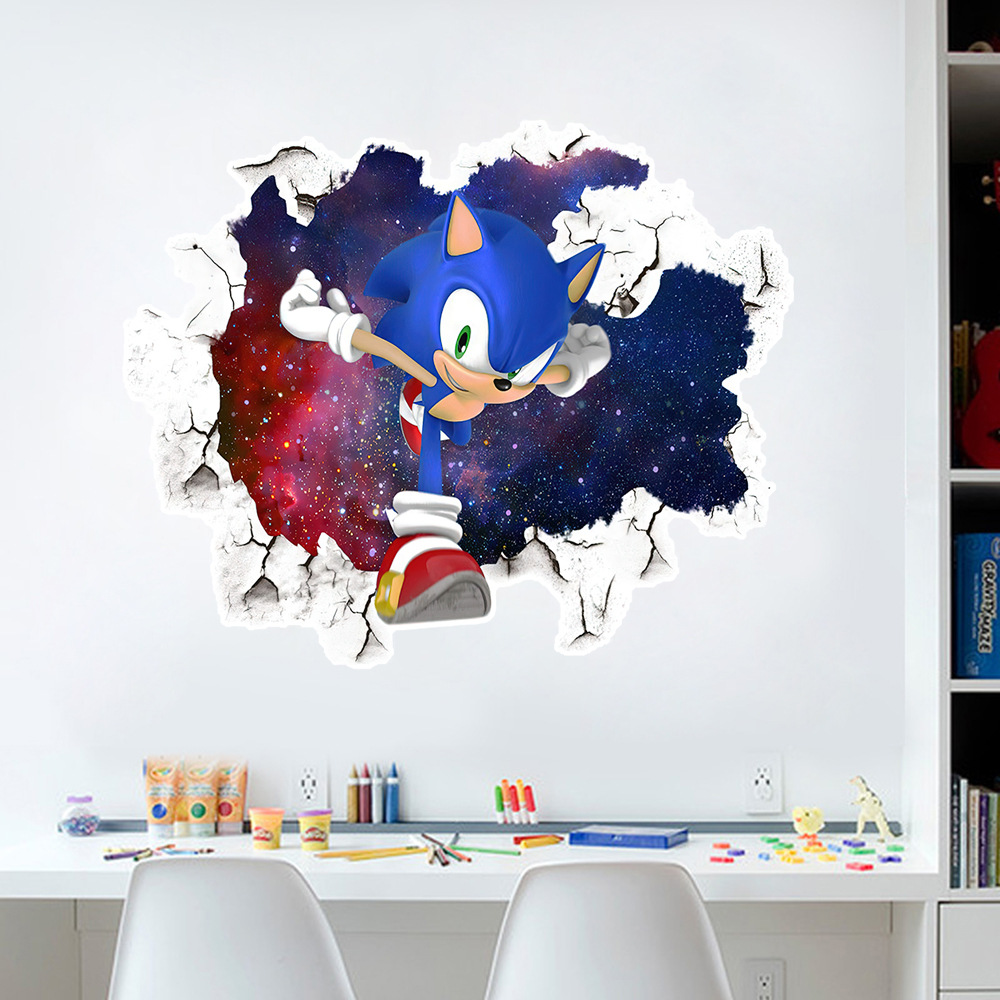 새로운 만화 소닉 스티커 자기 접착 도매 PVC 어린이 방 벽 장식 애니메이션 낙서 벽 스티커