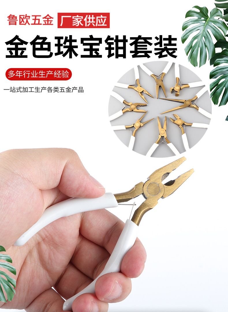 도매용 뾰족한 펜치, 사선 펜치, 보석 공예 도구, 목걸이와 팔찌 제작용 절단 도구, 4.5inch개 8종 세트, 금색 펜치