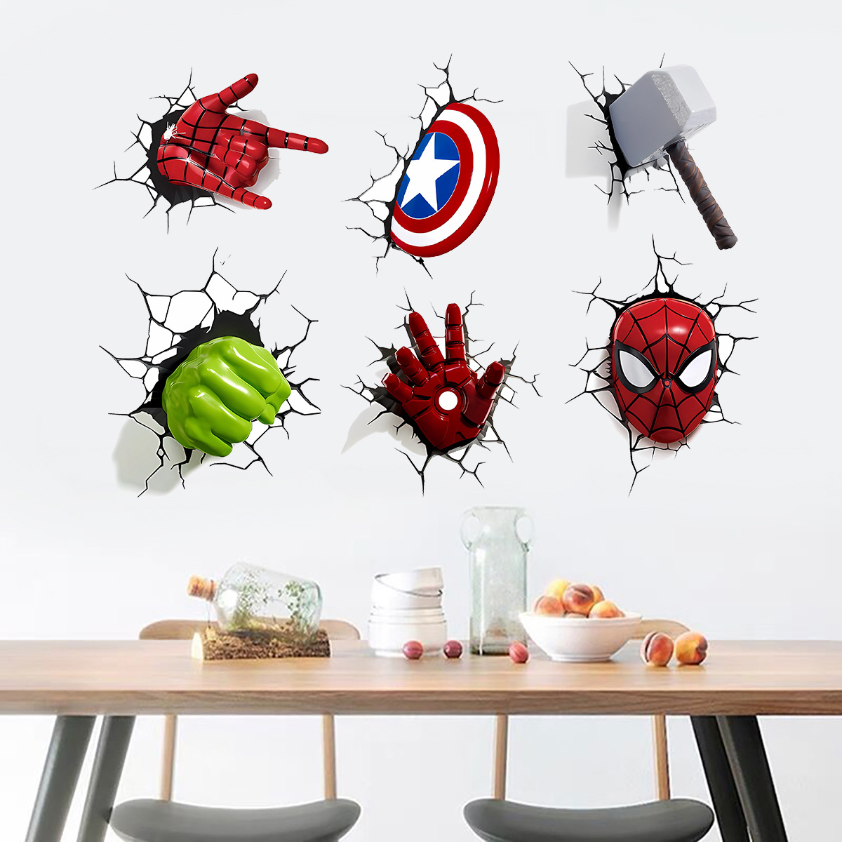 어벤저 스 어린이 방 크리 에이 티브 맞춤형 장식 스티커 자체 접착 스파이더 맨 이동식 PVC 스티커 마블스토어 가기