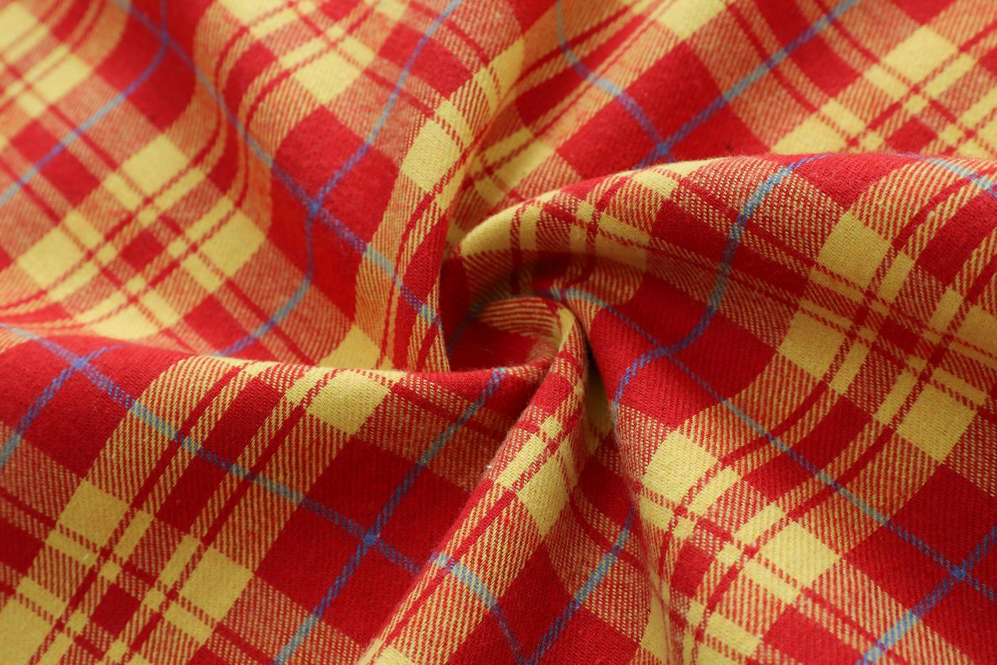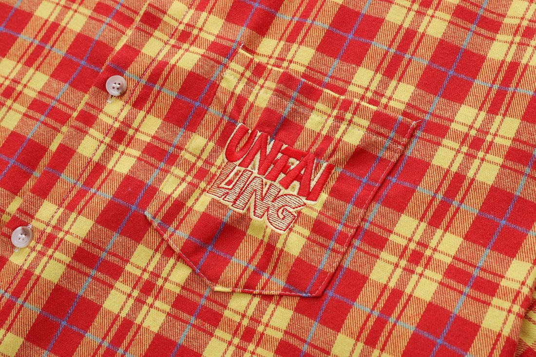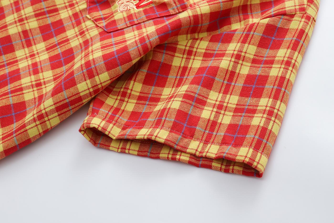 남성과 여성을 위한 미국 빈티지 대비 빨간색과 노란색 격자 무늬 반팔 셔츠 복고풍 디자인 잘 생긴 커플 셔츠