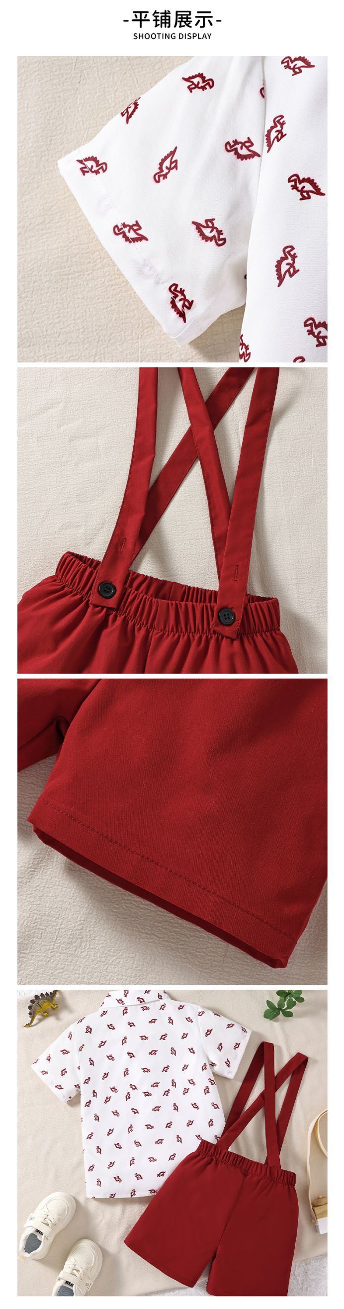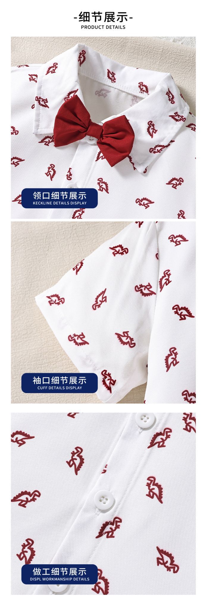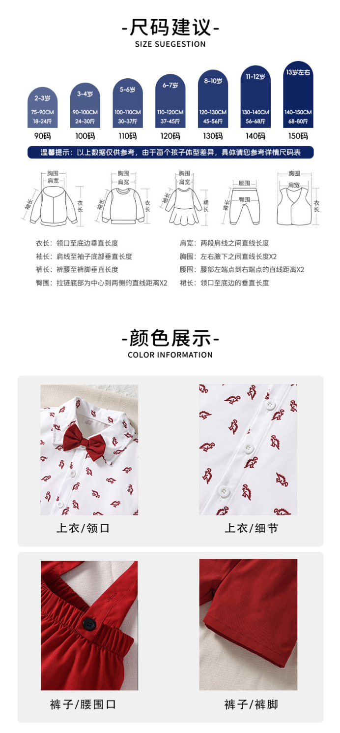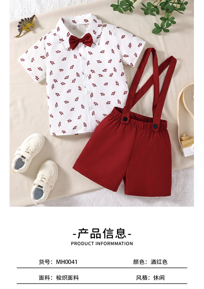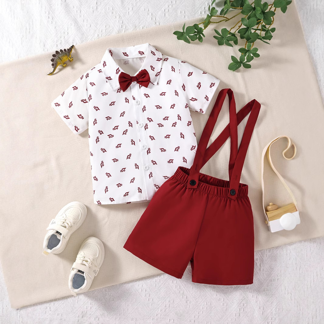 크로스보더 아동복 여름 아동 셔츠 반팔 여름옷 아기 만화 프린트 영국 신사복 남아 정장 세트
