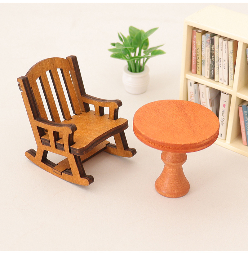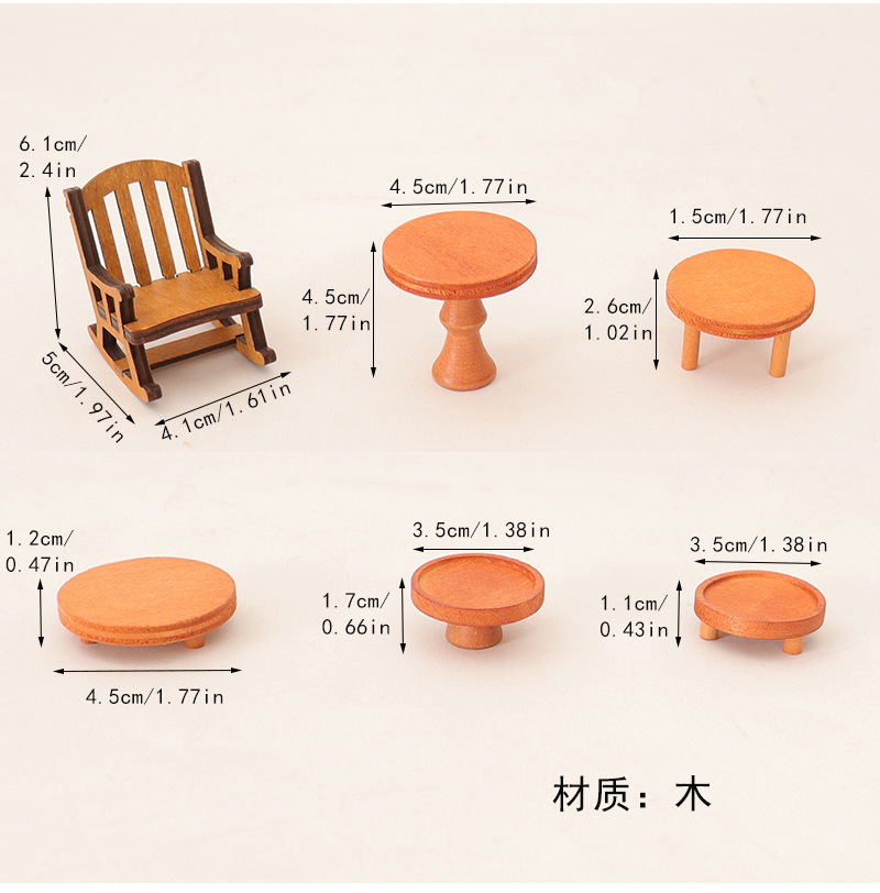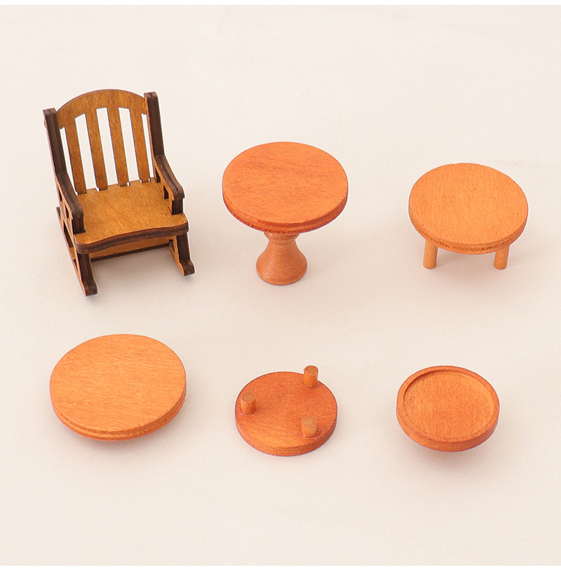 인형 집 인형 집 미니어처 가구 다크 브라운 나무 간단한 원형 테이블 커피 테이블 테이블 모델 장식