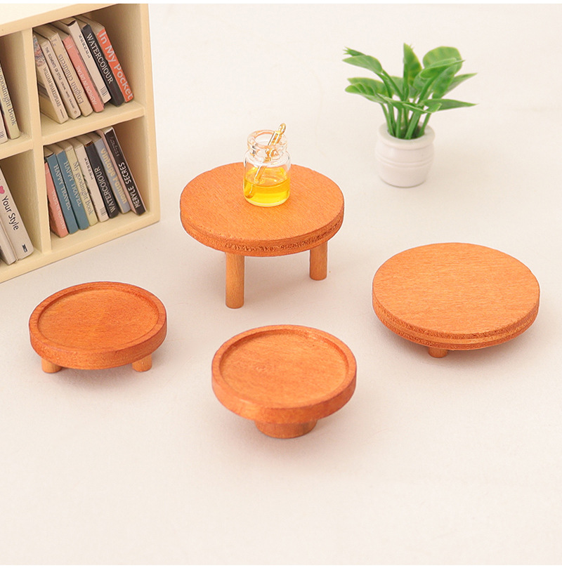 인형 집 인형 집 미니어처 가구 다크 브라운 나무 간단한 원형 테이블 커피 테이블 테이블 모델 장식스토어 가기