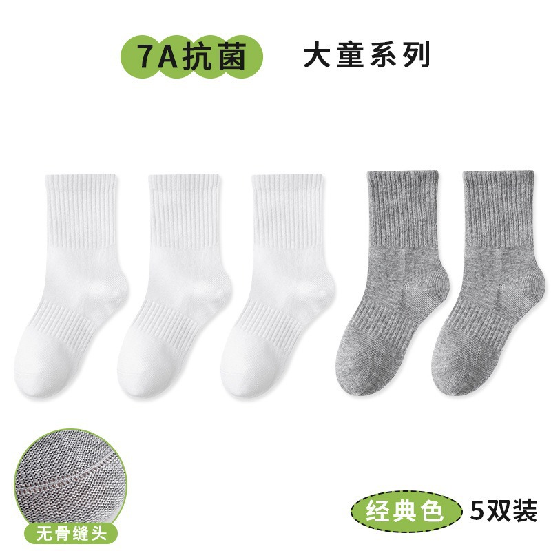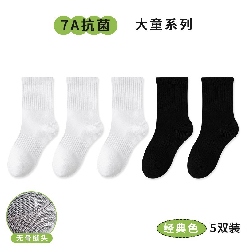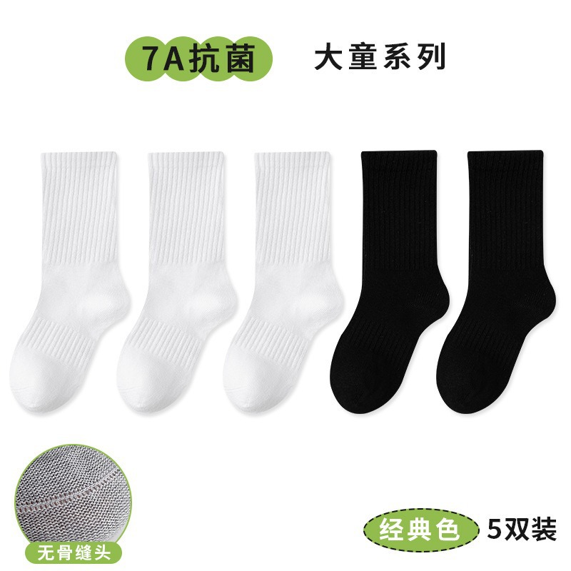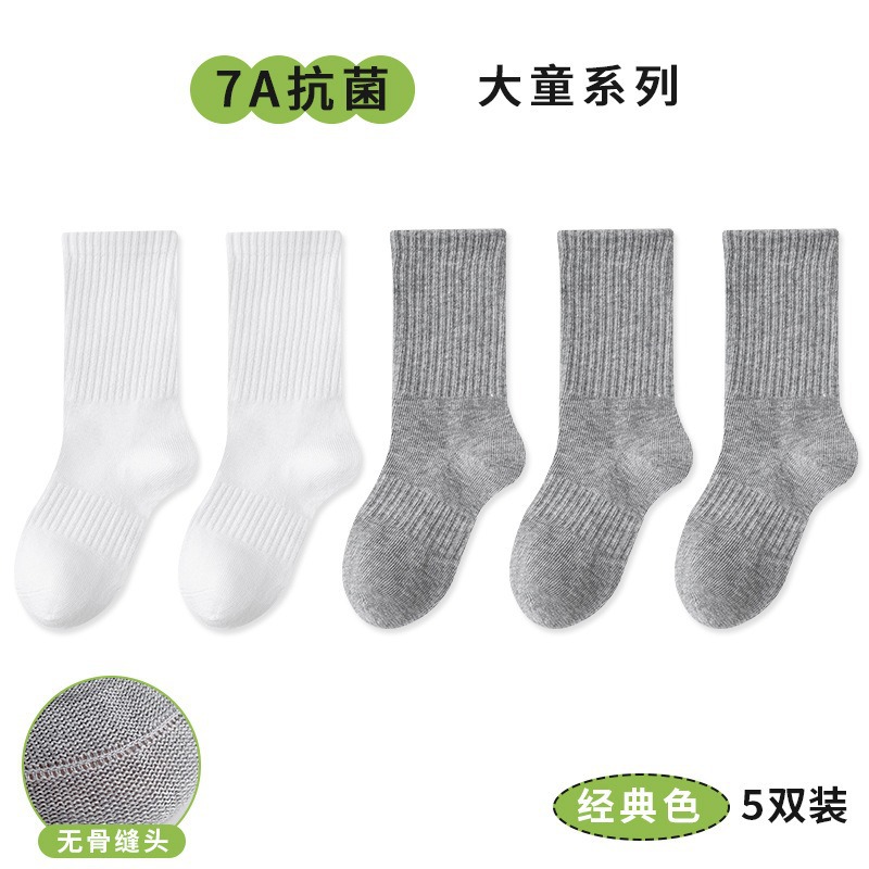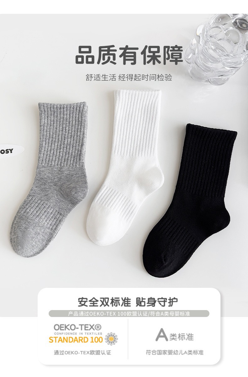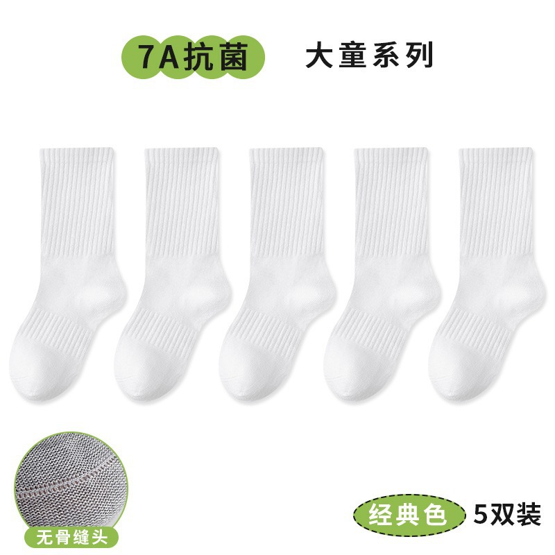 어린이 양말 봄과 가을 스타일 소년과 소녀 클래식 흰색 양말 단색 클래스 A 면 종아리 양말 스포츠 땀 흡수 및 탈취제