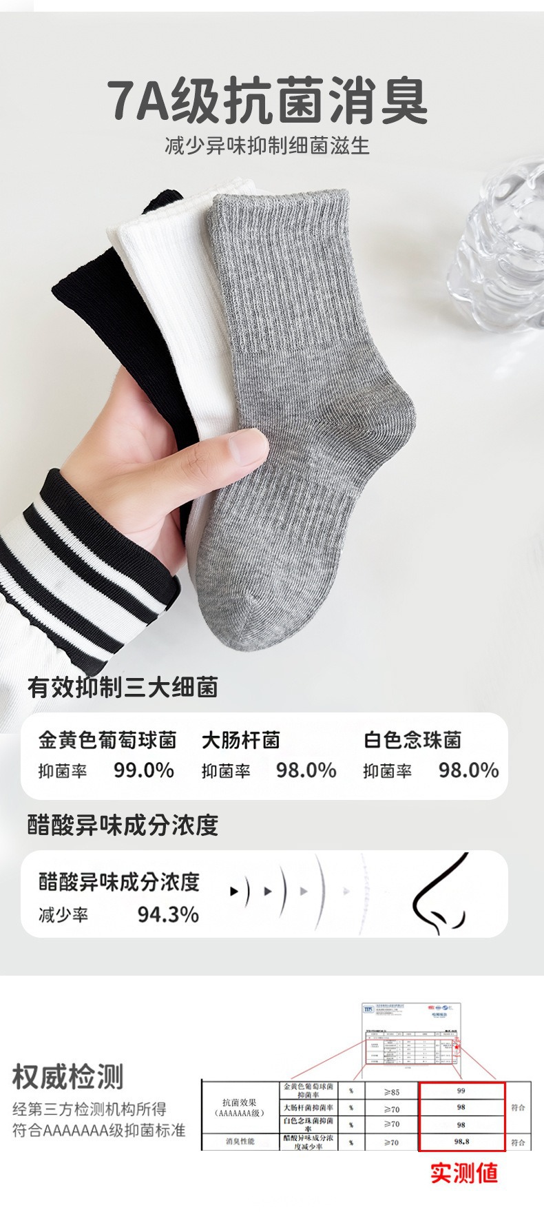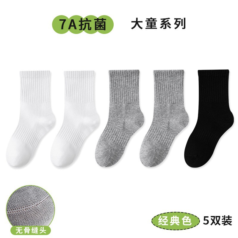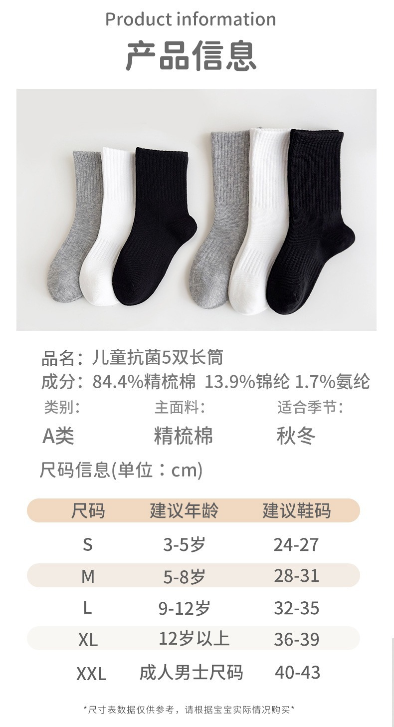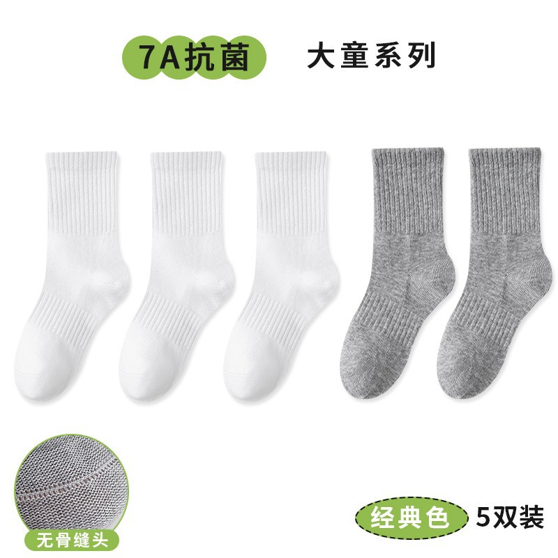 어린이 양말 봄과 가을 스타일 소년과 소녀 클래식 흰색 양말 단색 클래스 A 면 종아리 양말 스포츠 땀 흡수 및 탈취제