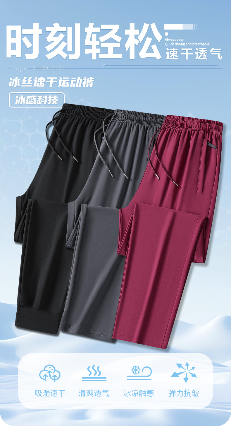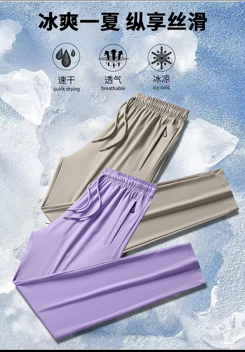 남성과 청소년을 위한 무료 배송 여름 신작 스포츠 및 레저 아이스 실크 바지, 남성용 루즈 스트레이트 아이스 실크 바지, 슬림핏 레깅스스토어 가기