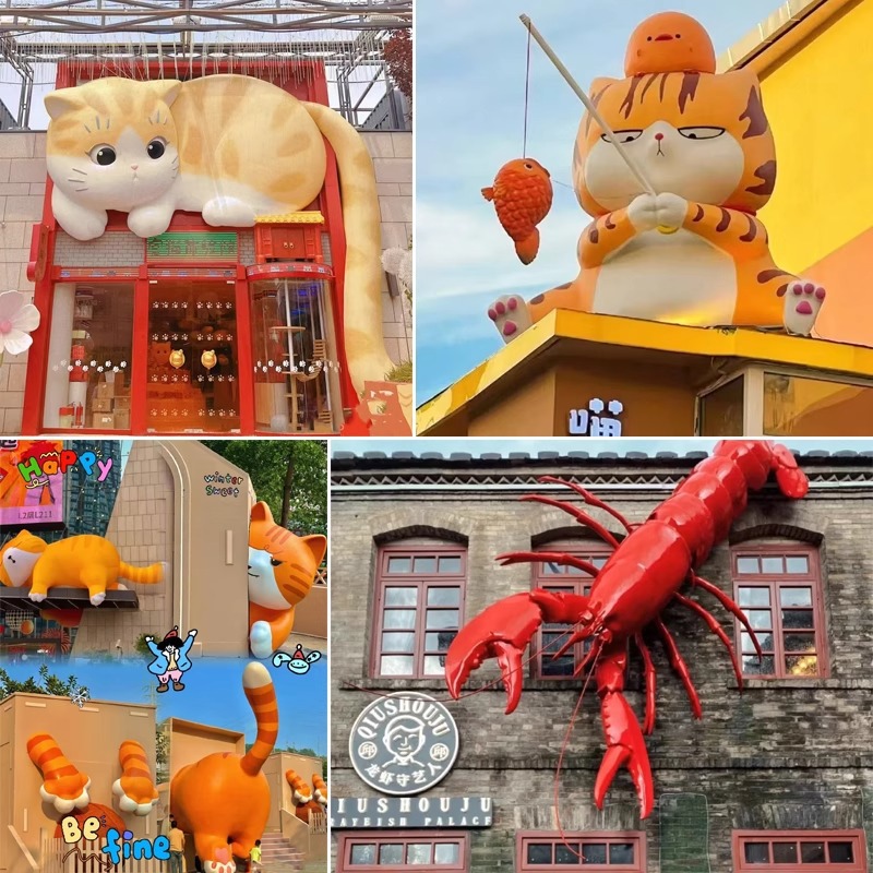 대형 유리 섬유 도어 조각 인터넷 연예인 애완 동물 가게 만화 동물 입체 지붕 고양이 벽 등반 장식품