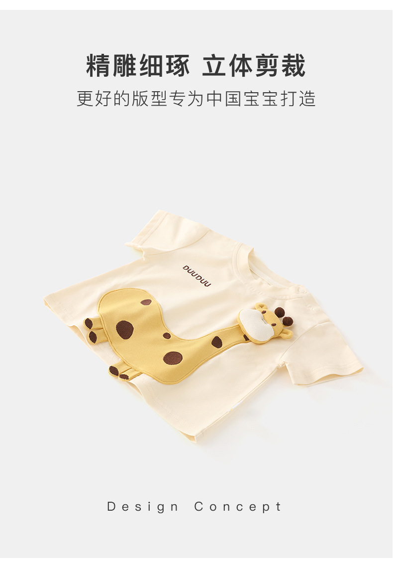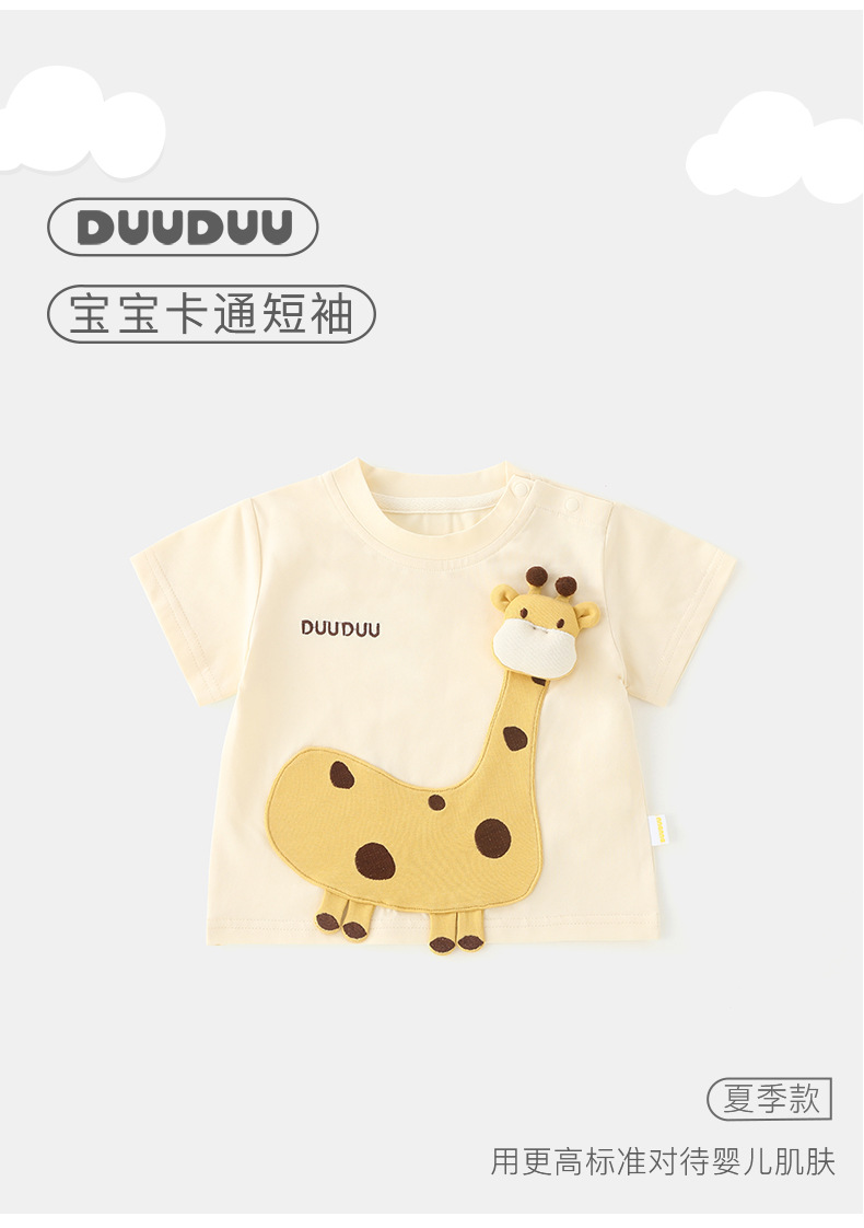 DUUDUU 기린 롬퍼 여름용 얇은 여아 반팔 상의 유아복 A급 남아 티셔츠 여름스토어 가기