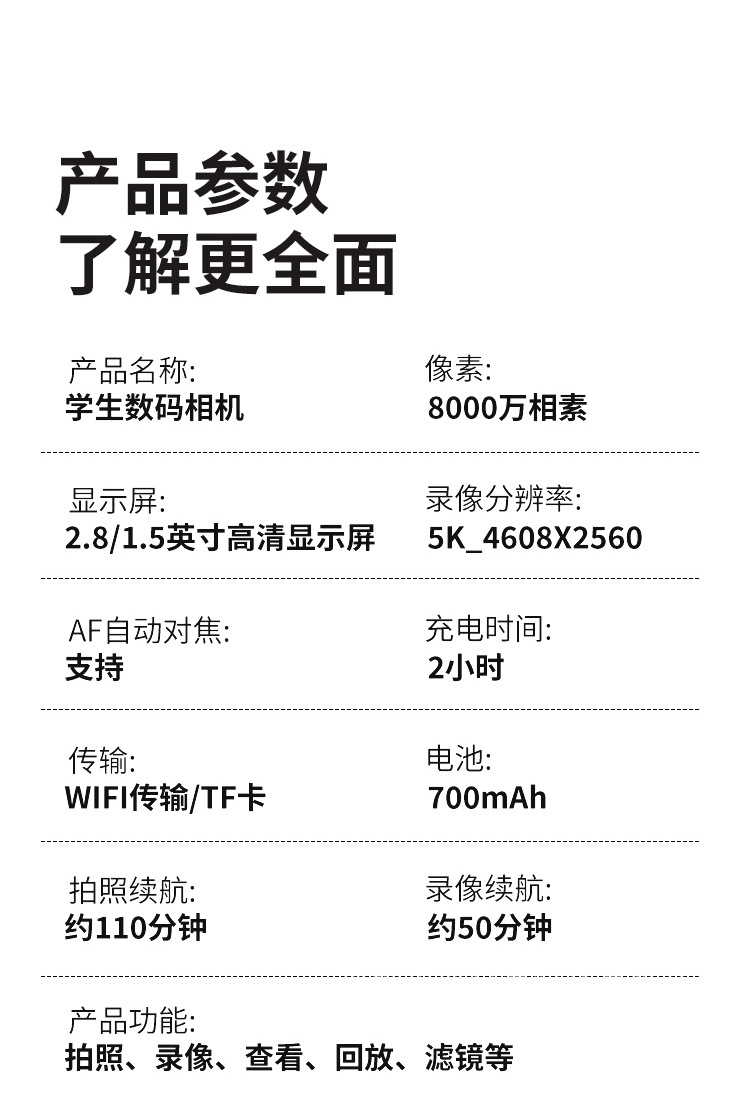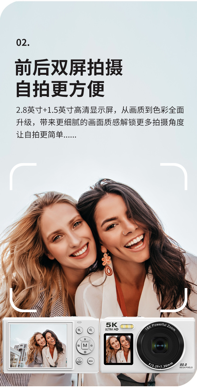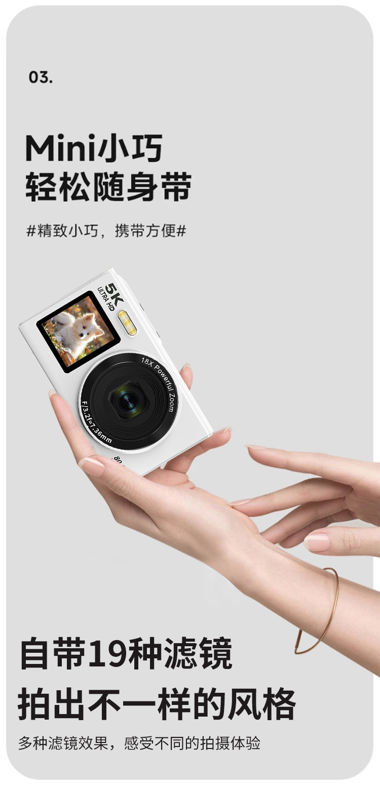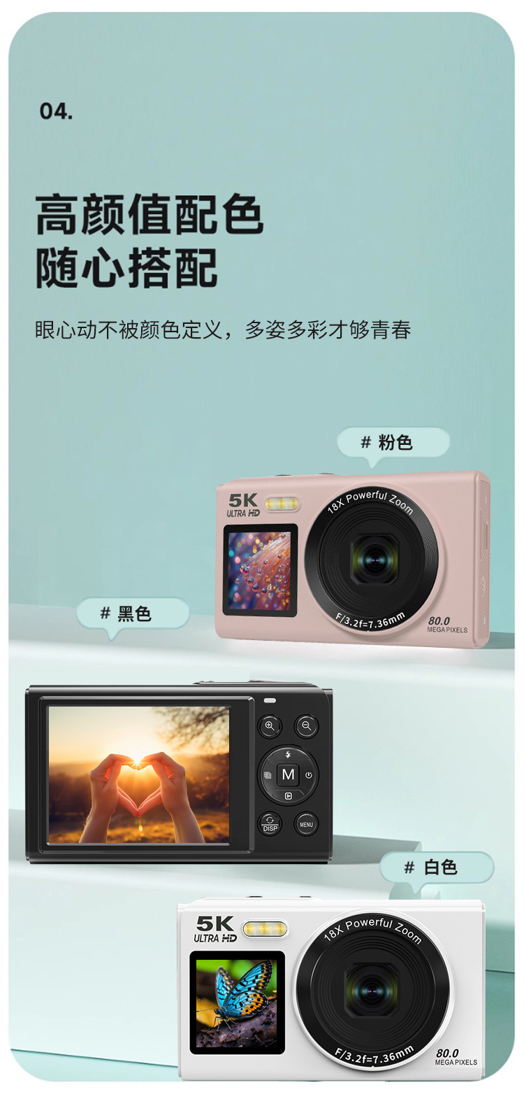 5K 학생 파티 디지털 카메라 화면 마이크로 싱글 HD 8천만 듀얼 스크린 픽셀 CCD 카메라 캠퍼스스토어 가기