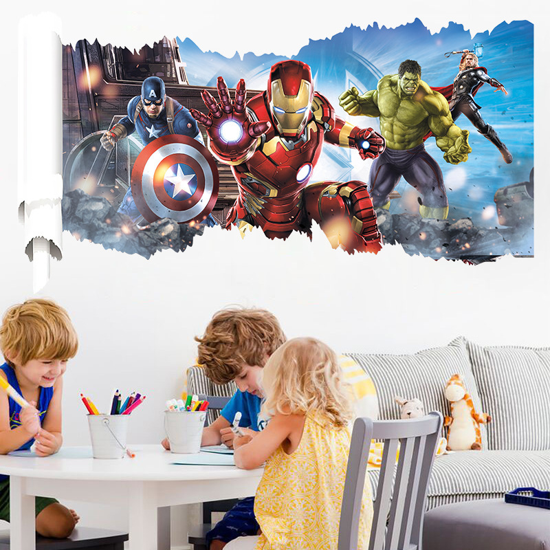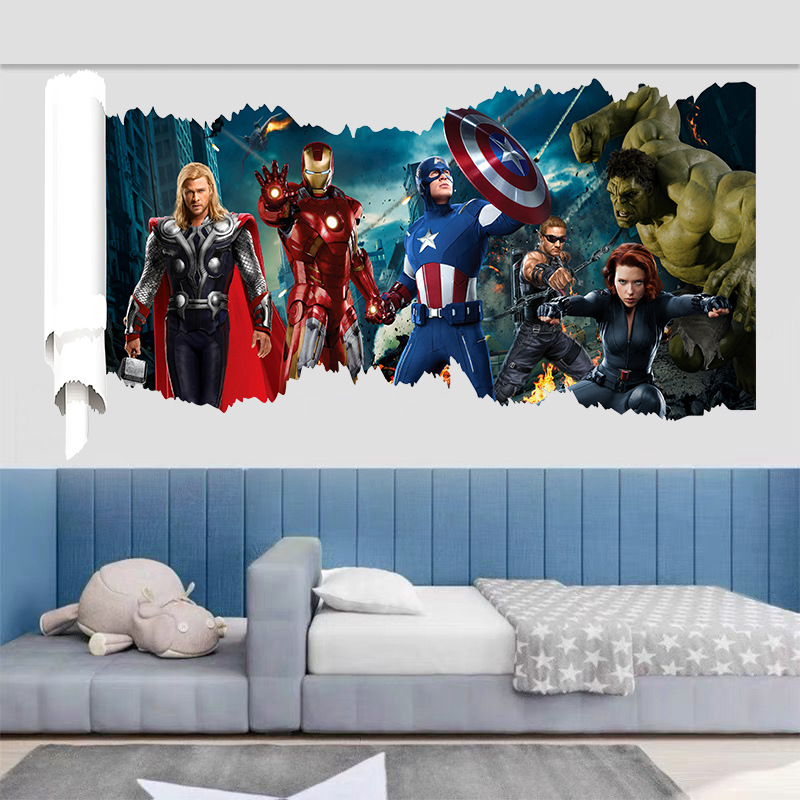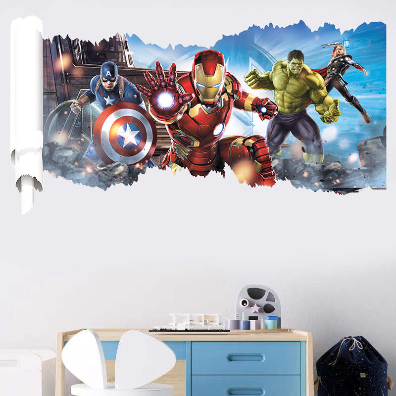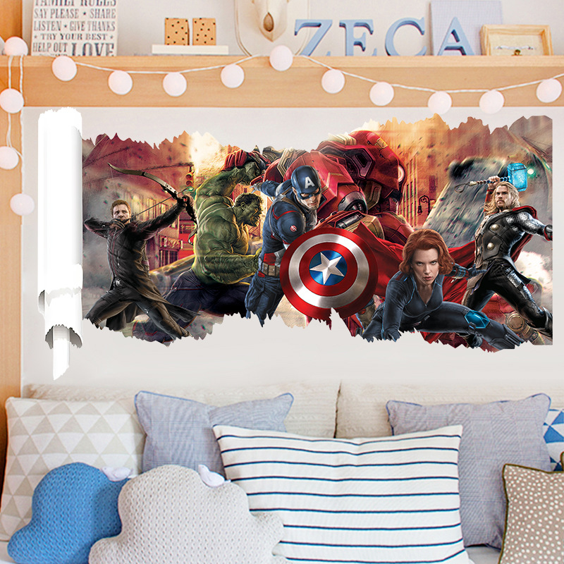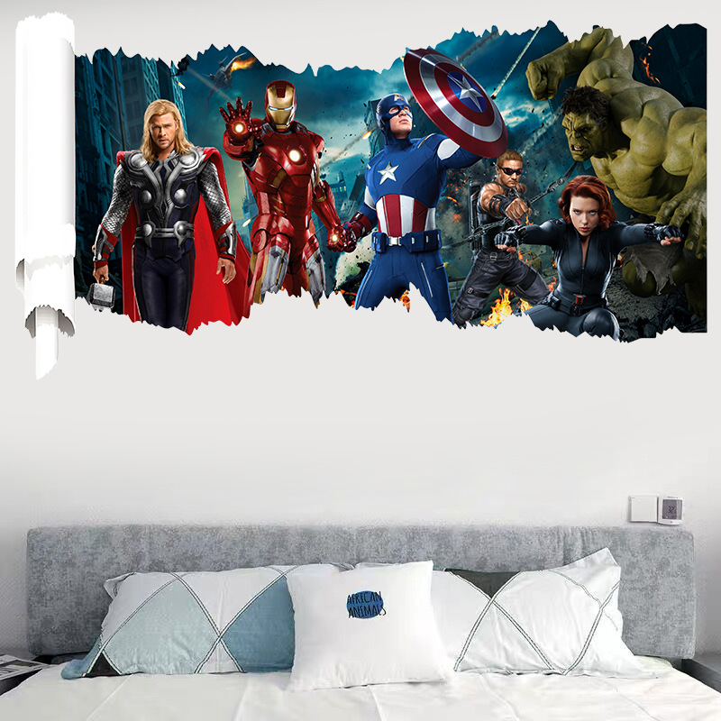 어벤저 스 스티커 기숙사 거실 벽 대형 벽지 자체 접착 마블 포스터스토어 가기