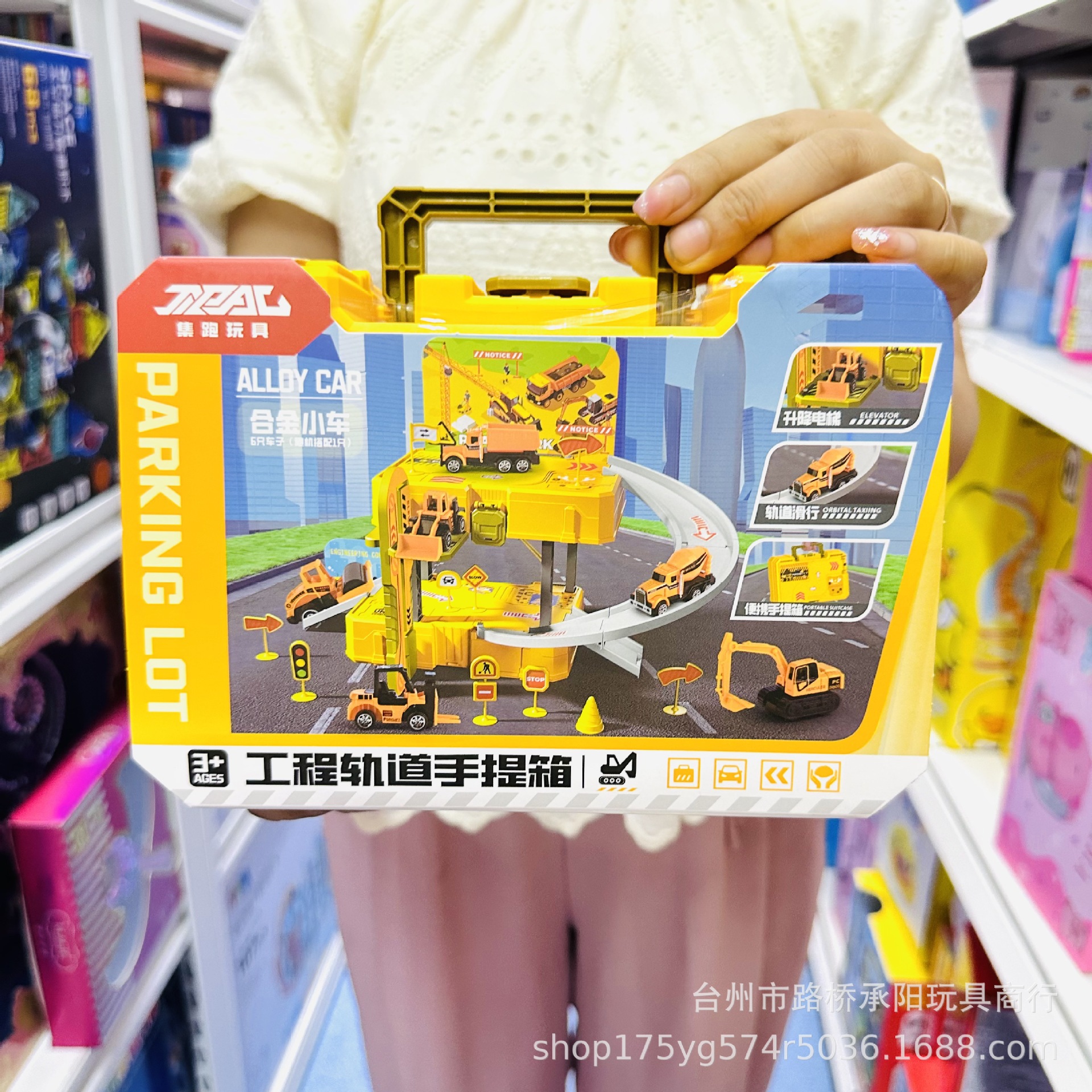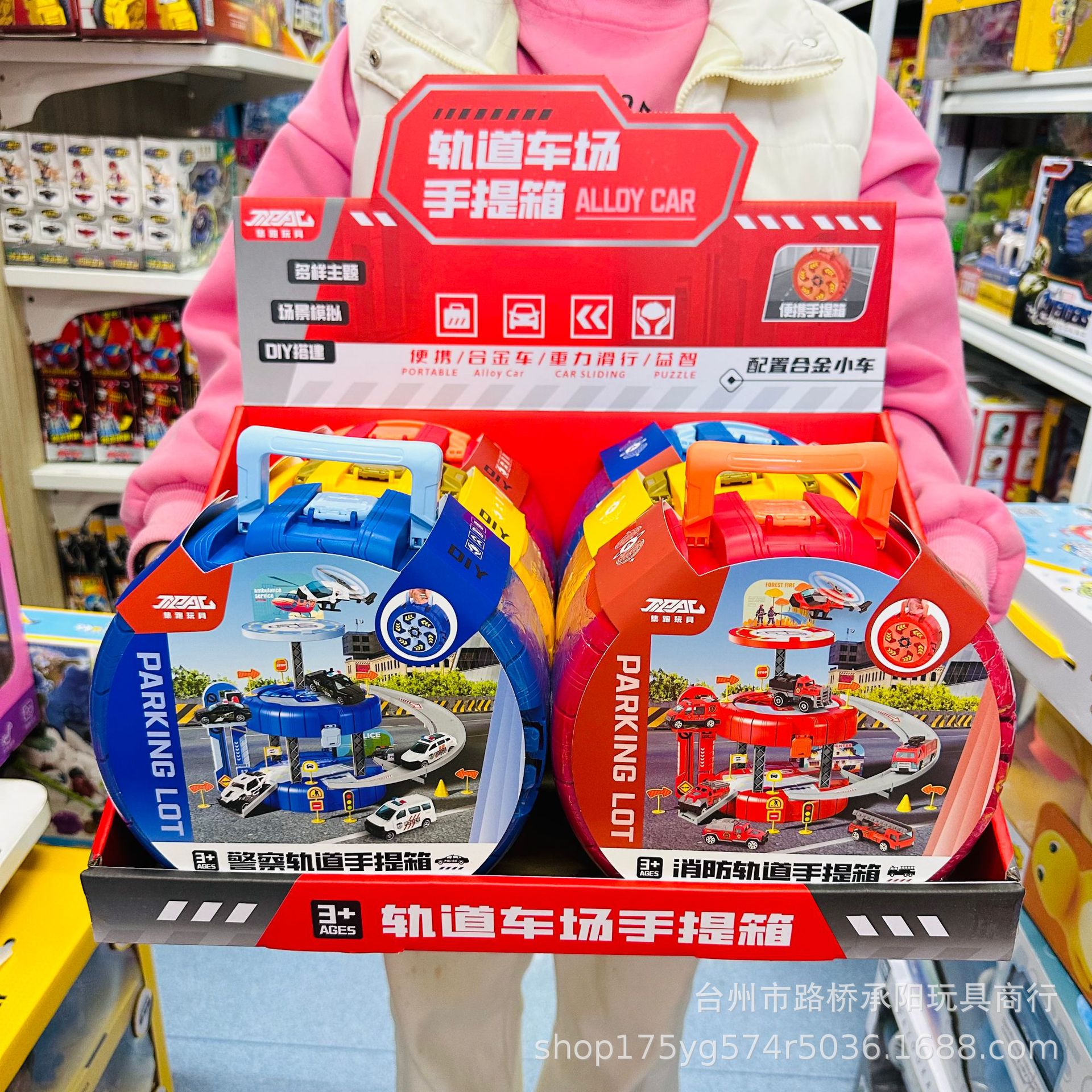 경찰 소방차 엔지니어링 차량 트랙 슬라이딩 가방 합금 자동차 주차 건물 어린이 장난감 선물 세트스토어 가기
