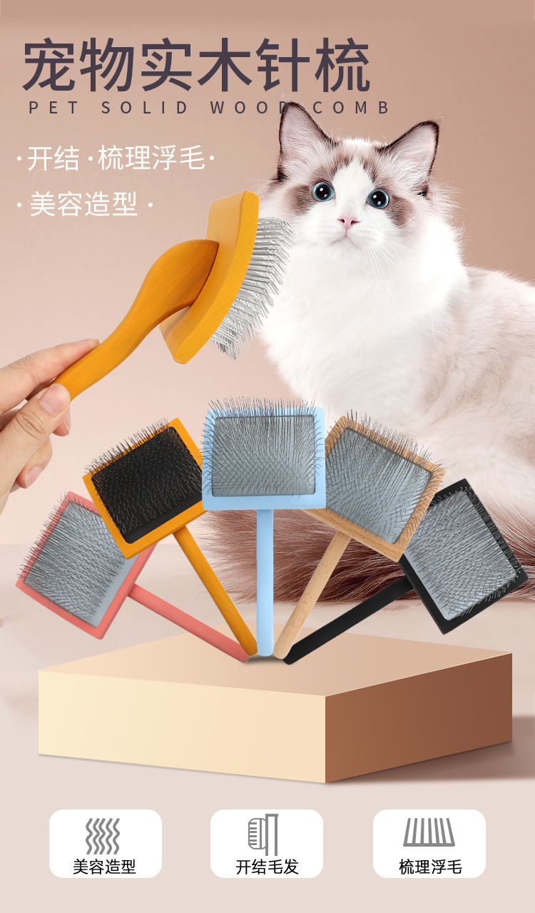 애완동물 빗, 대형견용 원목 브러시 니들 빗, 두꺼운 바늘, 푹신한 털, 미용사를 위한 개 빗스토어 가기