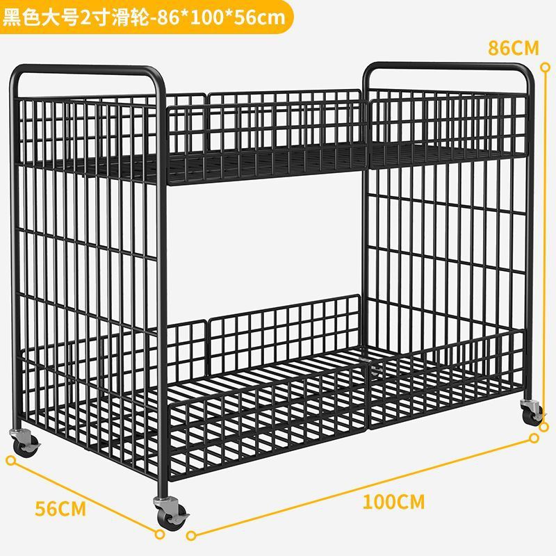 • 블랙 [내하중 100kg ] 더블 레이어 넓은 공간 - 페인트 벗겨짐 없음 - 소형 [65*86*56] 3.5호 휠