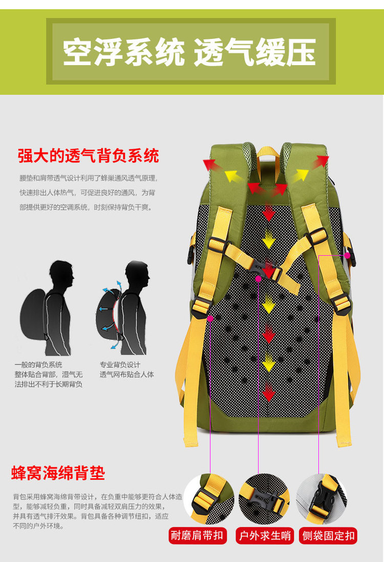 전문 등산 가방 대용량 야외 경량 등산 스포츠 여행 남성과 여성 하이킹 여행 배낭