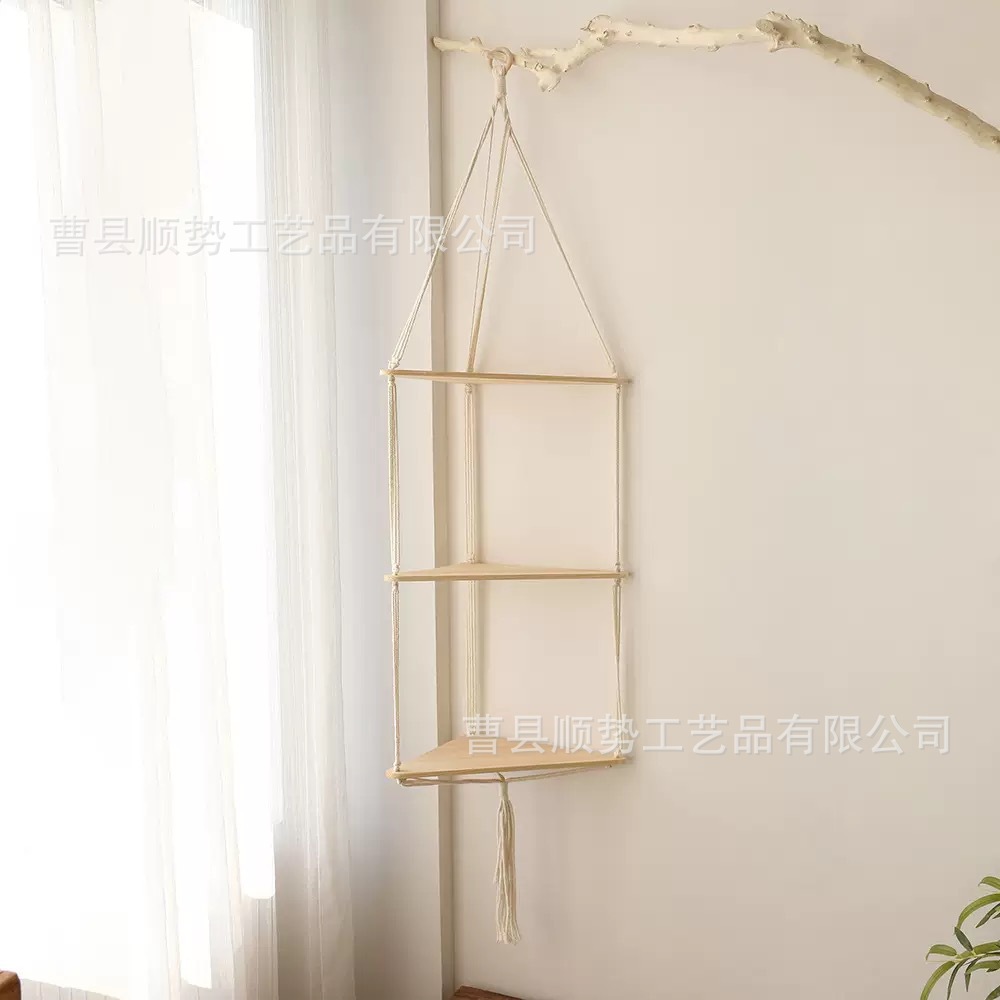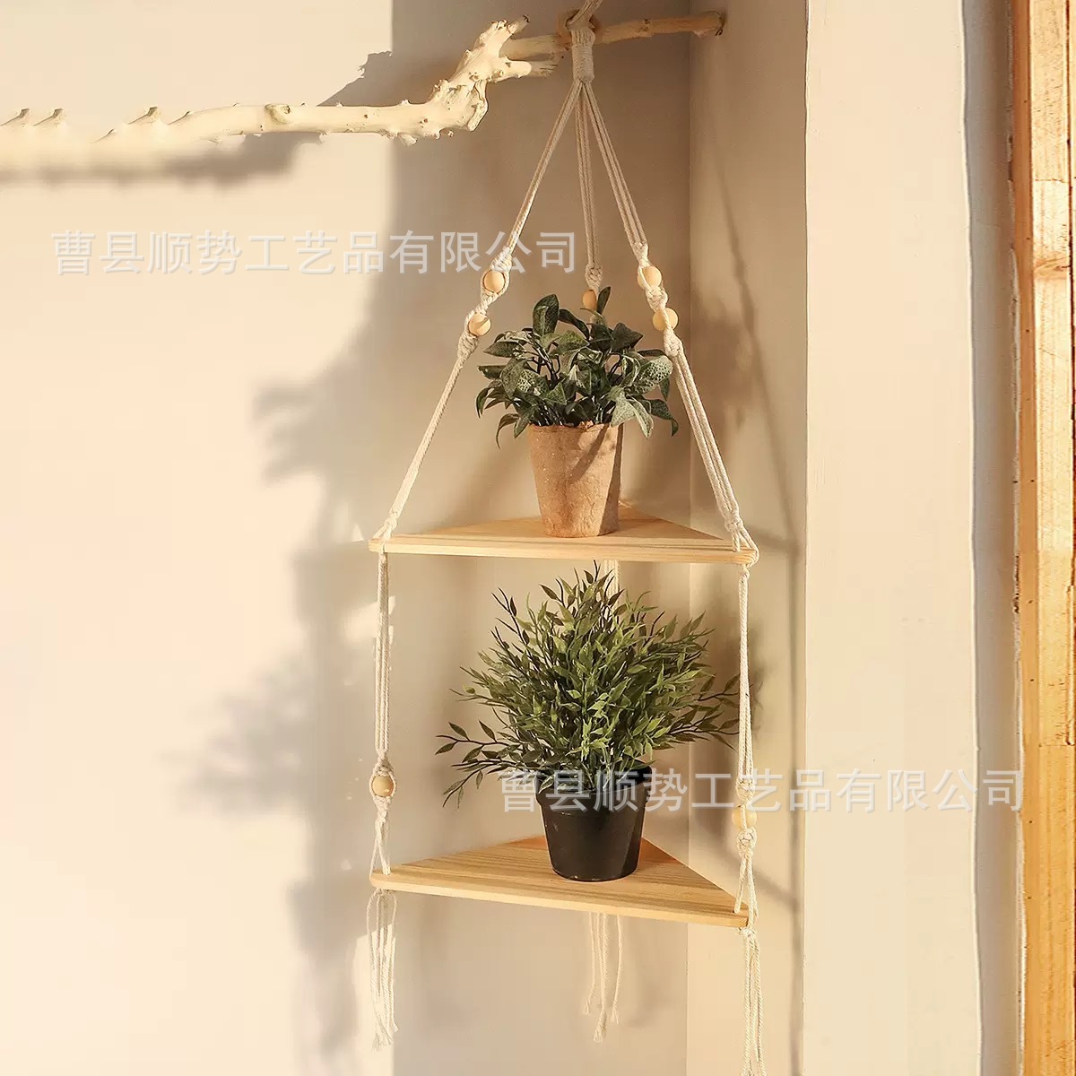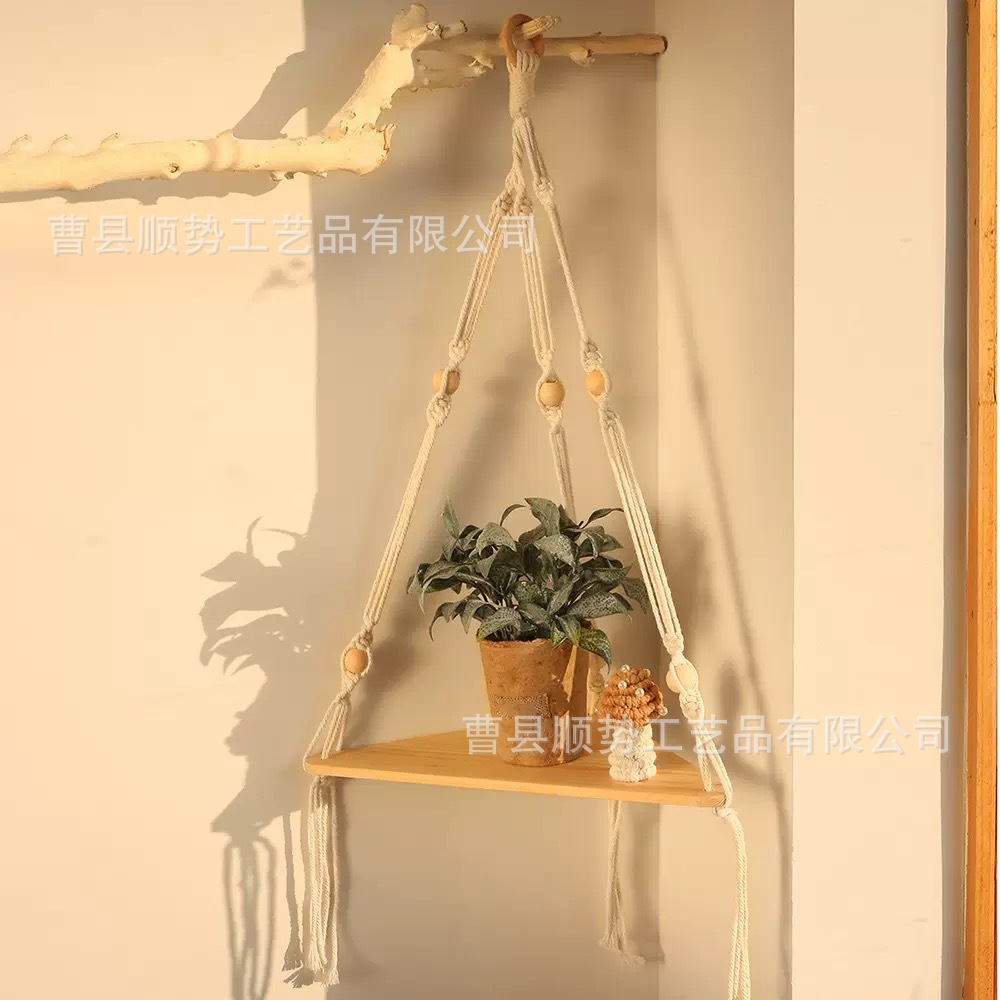 새로운 보헤미안 면 로프 손으로 짠 수납 선반 삼각형 나무 보드 홈 호텔 장식 화분 수납스토어 가기