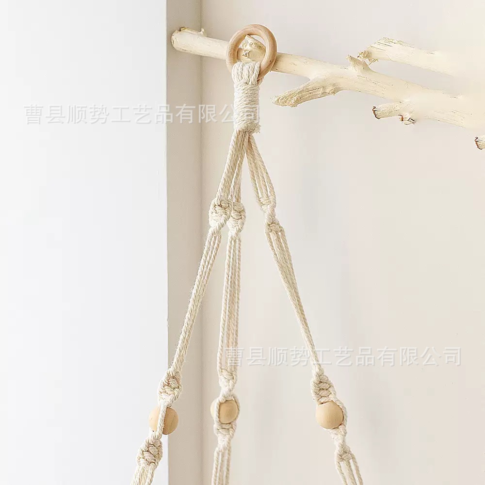 새로운 보헤미안 면 로프 손으로 짠 수납 선반 삼각형 나무 보드 홈 호텔 장식 화분 수납