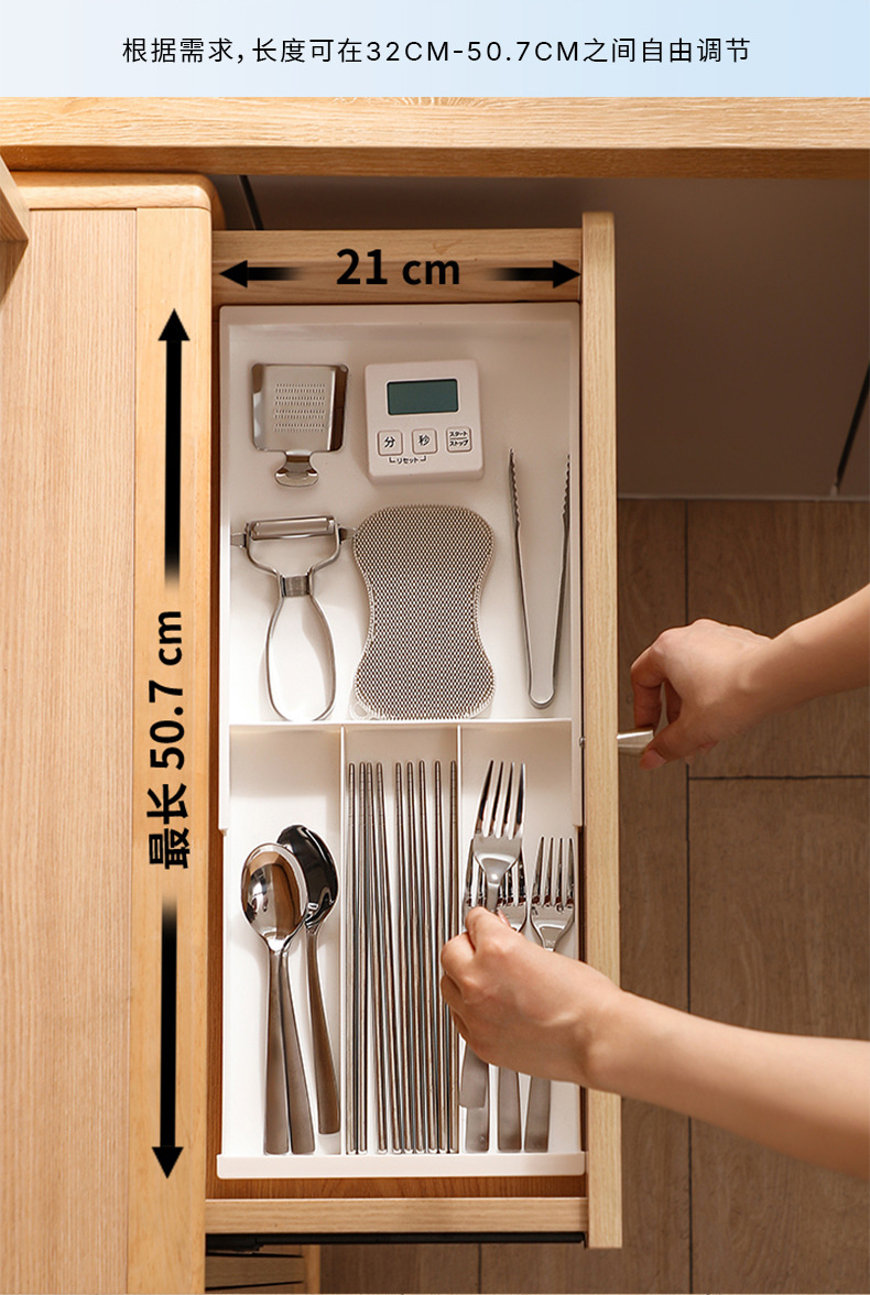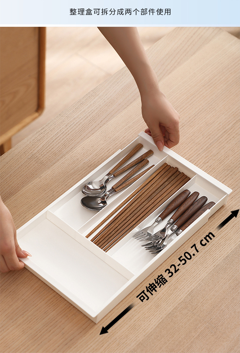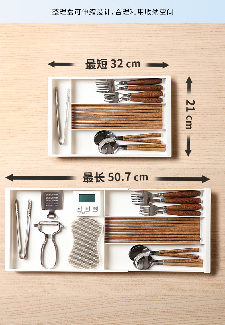 商品名称:日式可伸缩抽屉带分格收纳盒厨房可调节餐具整理盒书房文具储物盒
