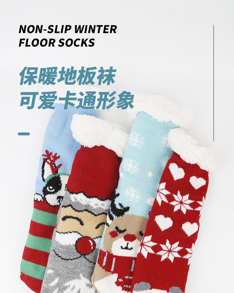 국경 간 매우 두꺼운 벨벳 여성 양말 만화 크리스마스 양말 홈 튜브 수면 양말 양고기 벨벳 바닥 양말스토어 가기