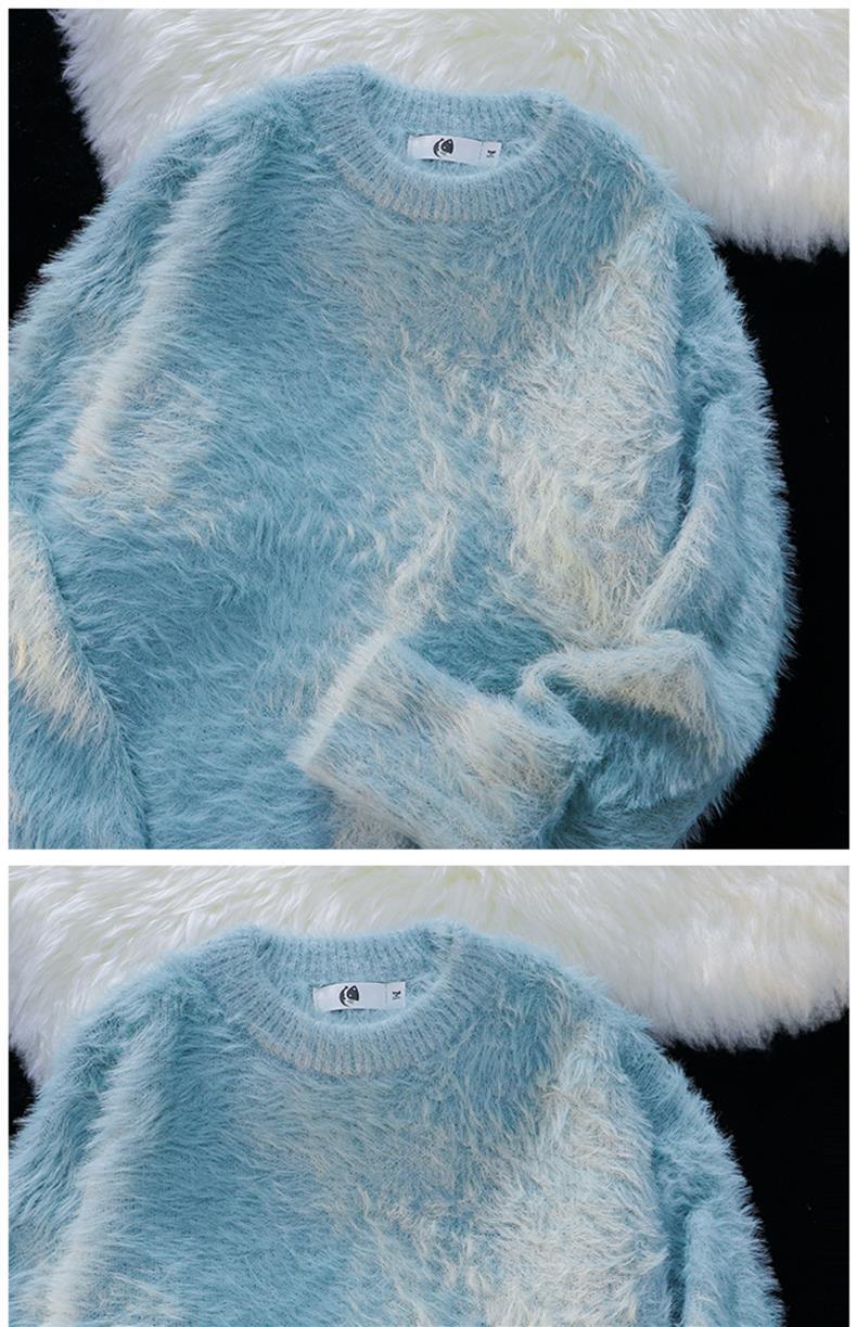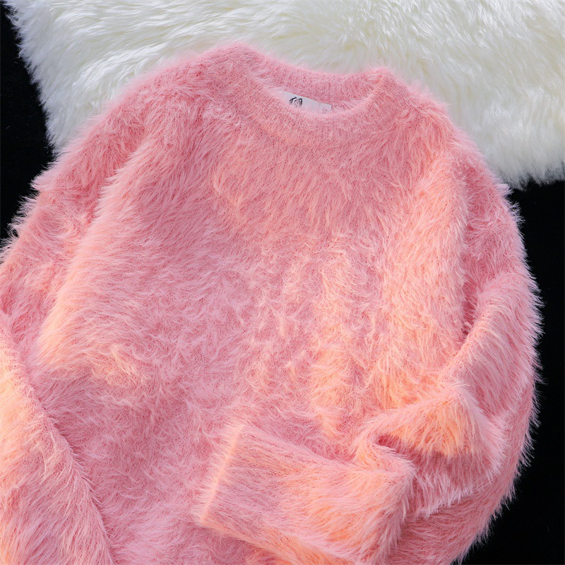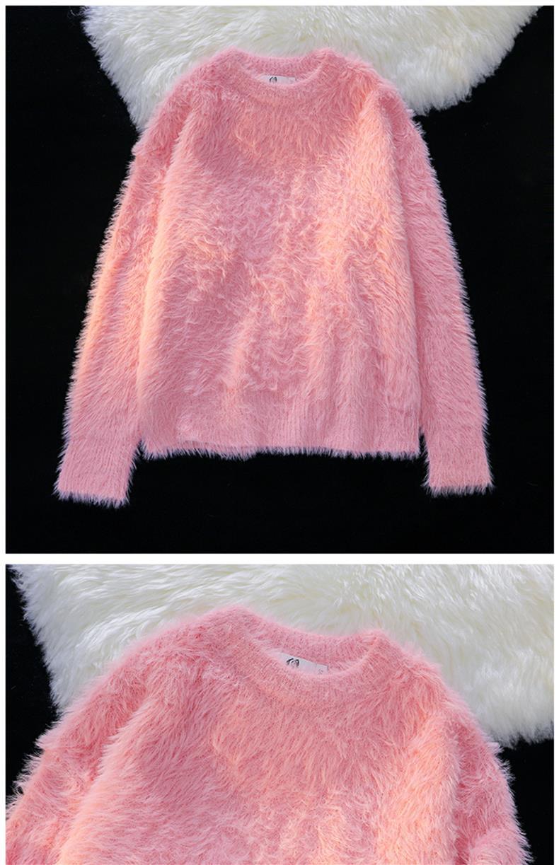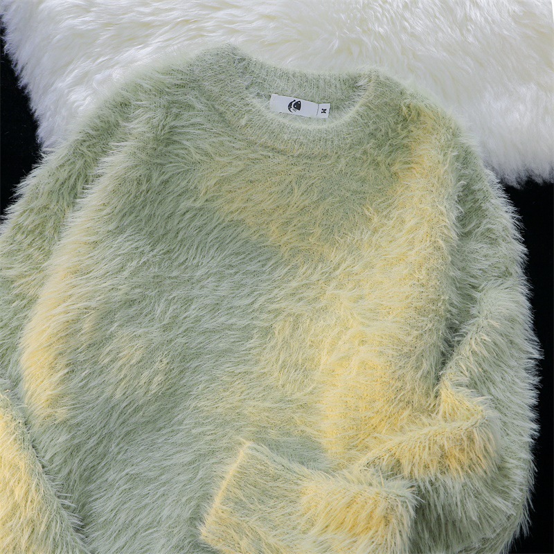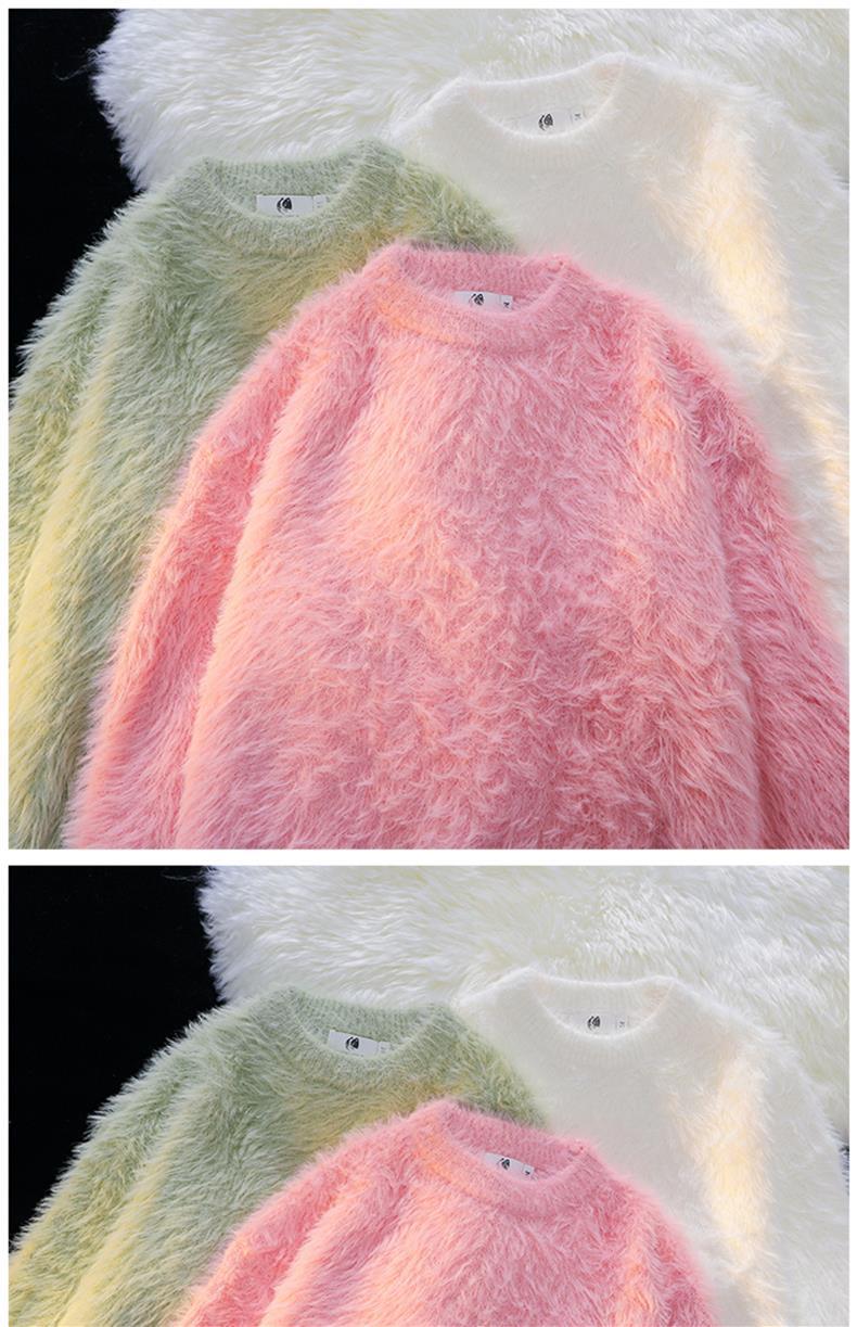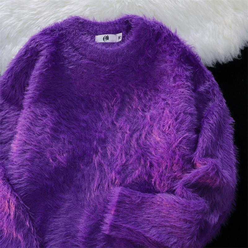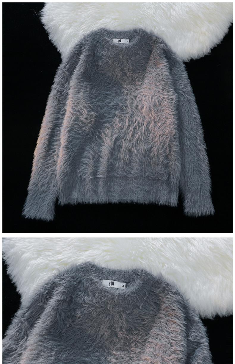 남성용 가을 겨울 단색 따뜻한 내부 스웨터 일본 유행 브랜드 복고풍 느슨한 부드러운 밀랍 모피 라운드 넥 스웨터
