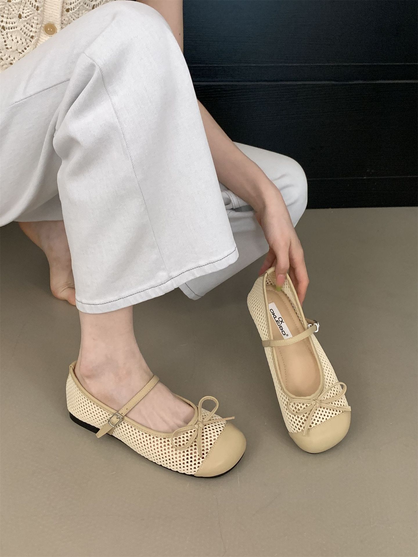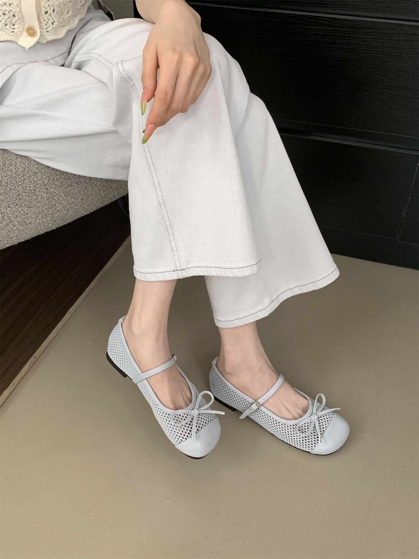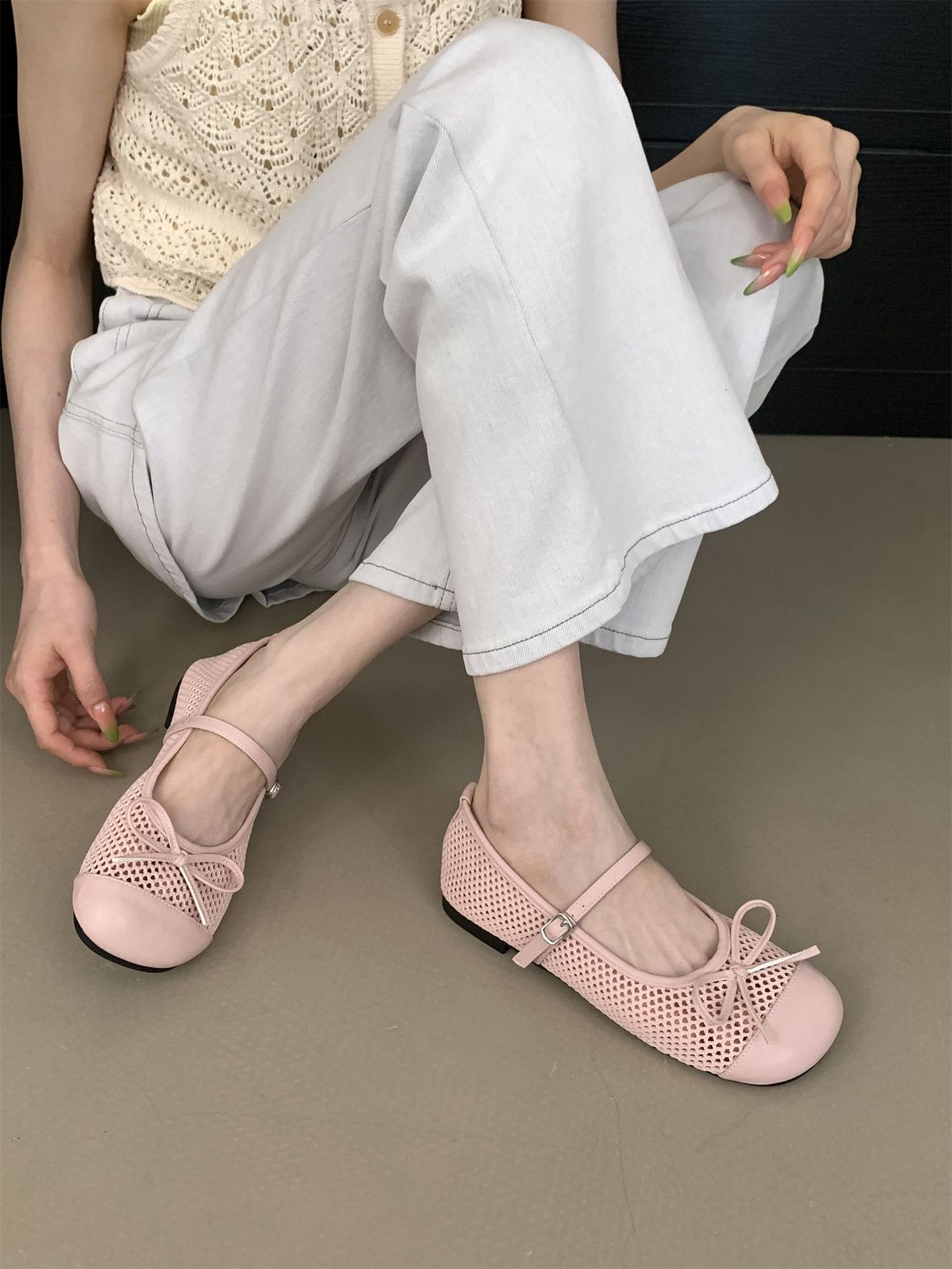 2025 봄 여름 신상 스퀘어 토 메쉬 홀 보우 메리제인 슈즈 원스트랩 페어리 슈즈스토어 가기
