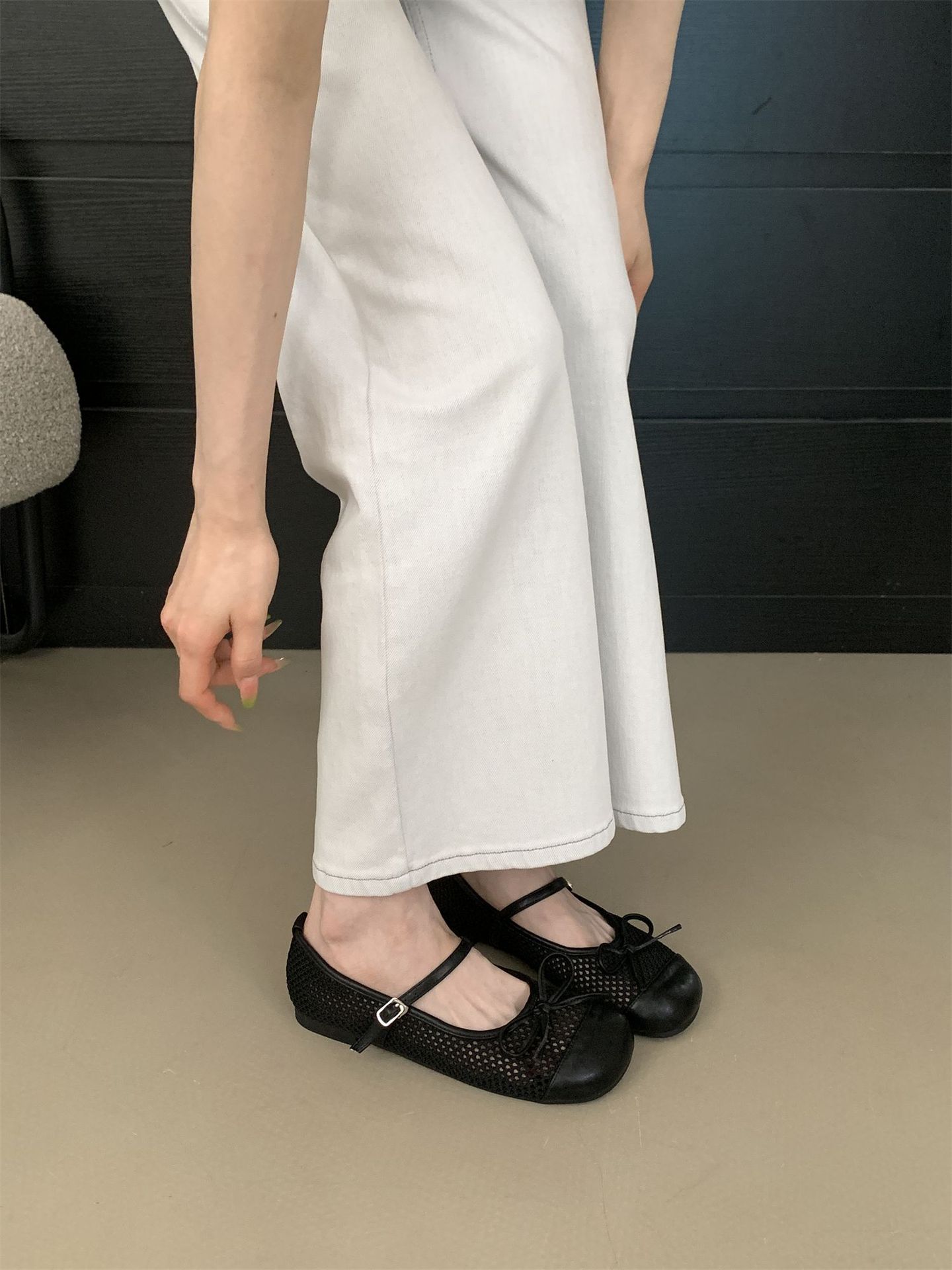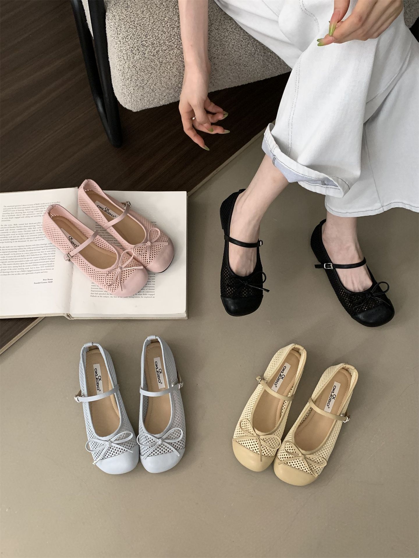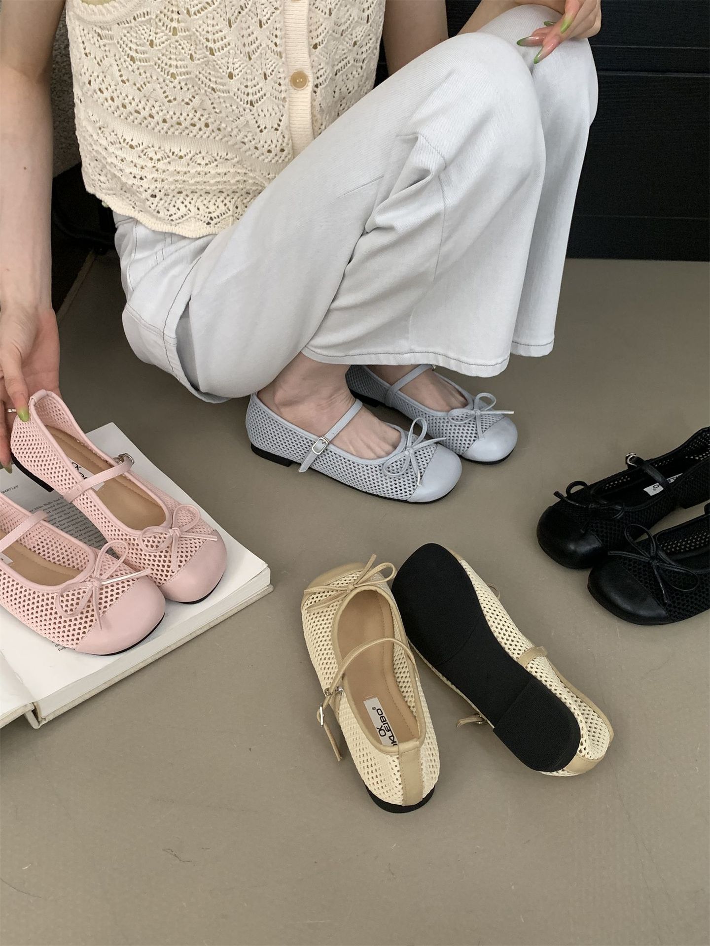 2025 봄 여름 신상 스퀘어 토 메쉬 홀 보우 메리제인 슈즈 원스트랩 페어리 슈즈스토어 가기