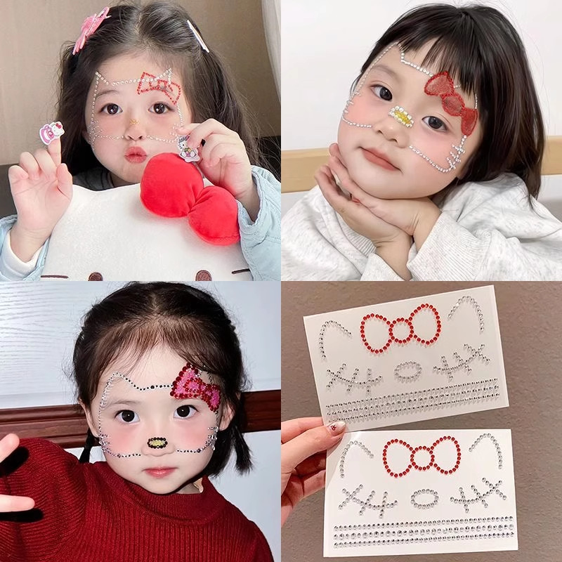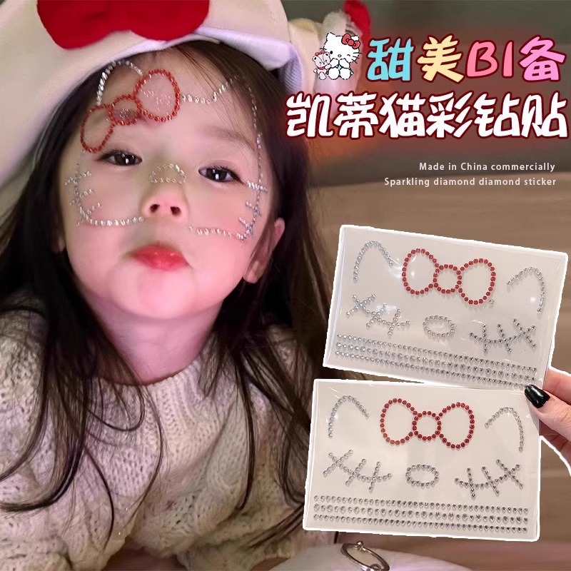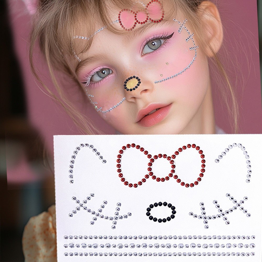 어린이 KT 고양이 플래시 다이아몬드 쇼 공연 메이크업 스티커 메이크업 스티커 소녀 분위기 드레스 사진 소품 스티커 다이아몬드