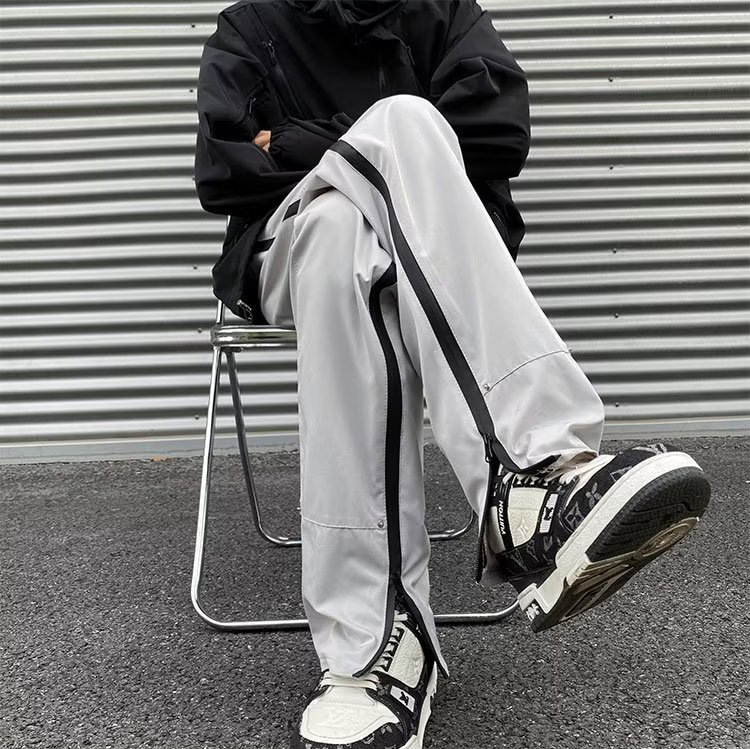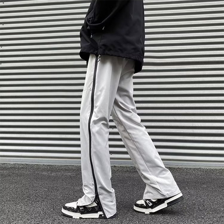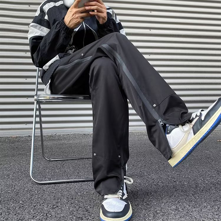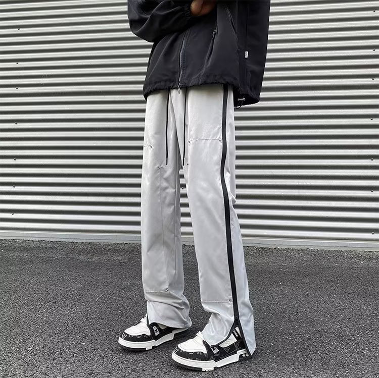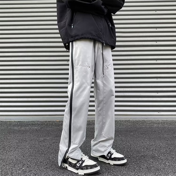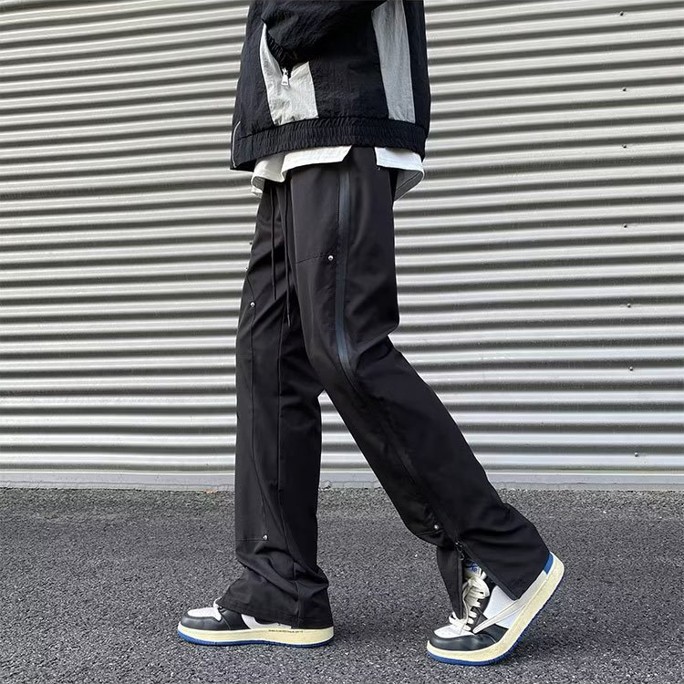 여름 인기 지퍼 슬릿 남성용 스트레이트 하이 스트리트 스포츠 및 레저 트렌디 브랜드 멋진 속건성 와이드 팬츠