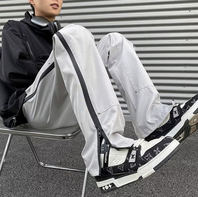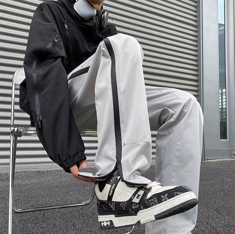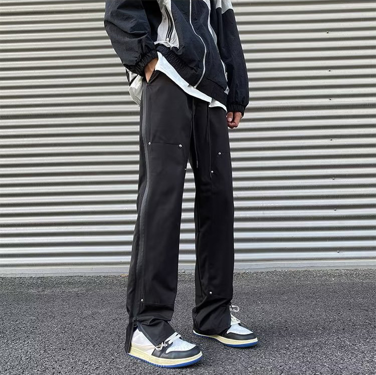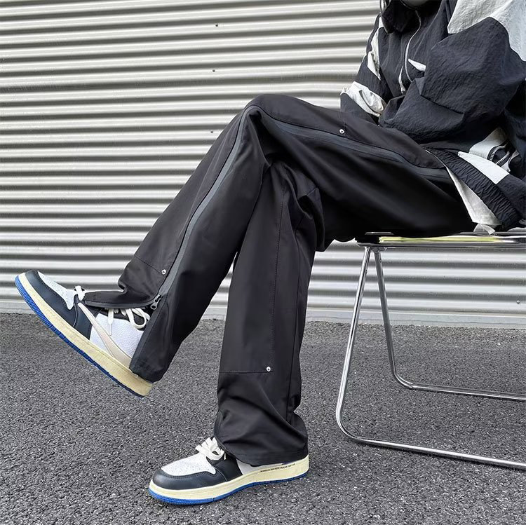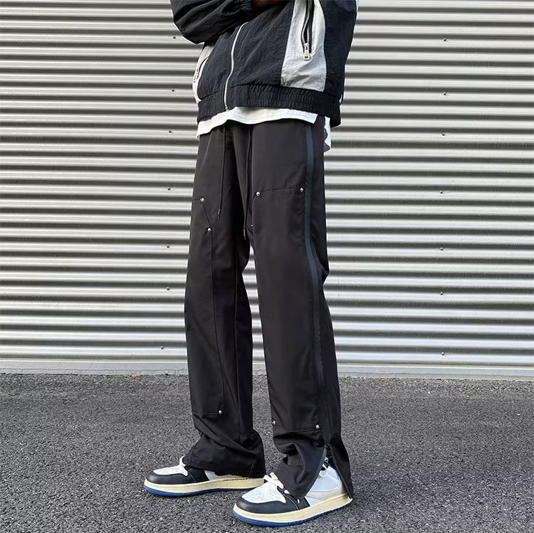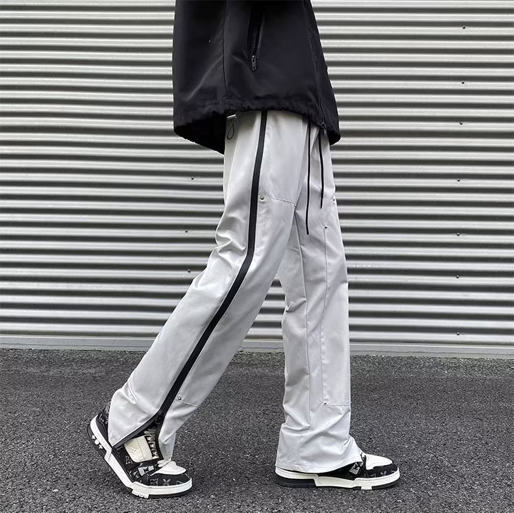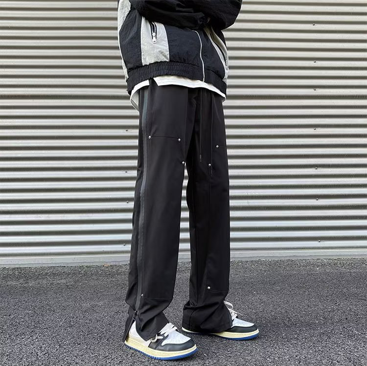 여름 인기 지퍼 슬릿 남성용 스트레이트 하이 스트리트 스포츠 및 레저 트렌디 브랜드 멋진 속건성 와이드 팬츠